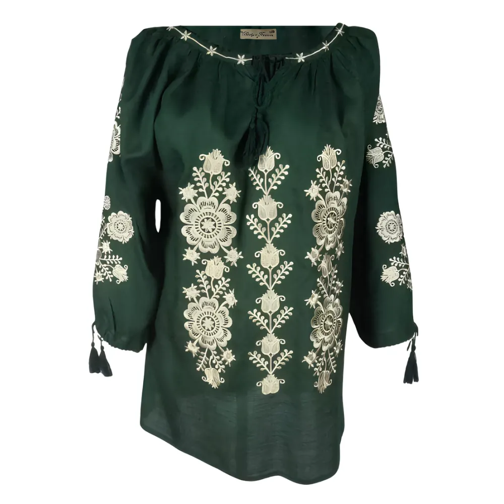 Bluza verde cu motiv floral auriu - BMG121