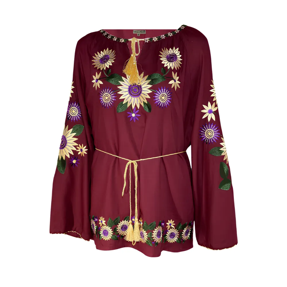 Bluza visinie cu motiv floral multicolor - BMG122