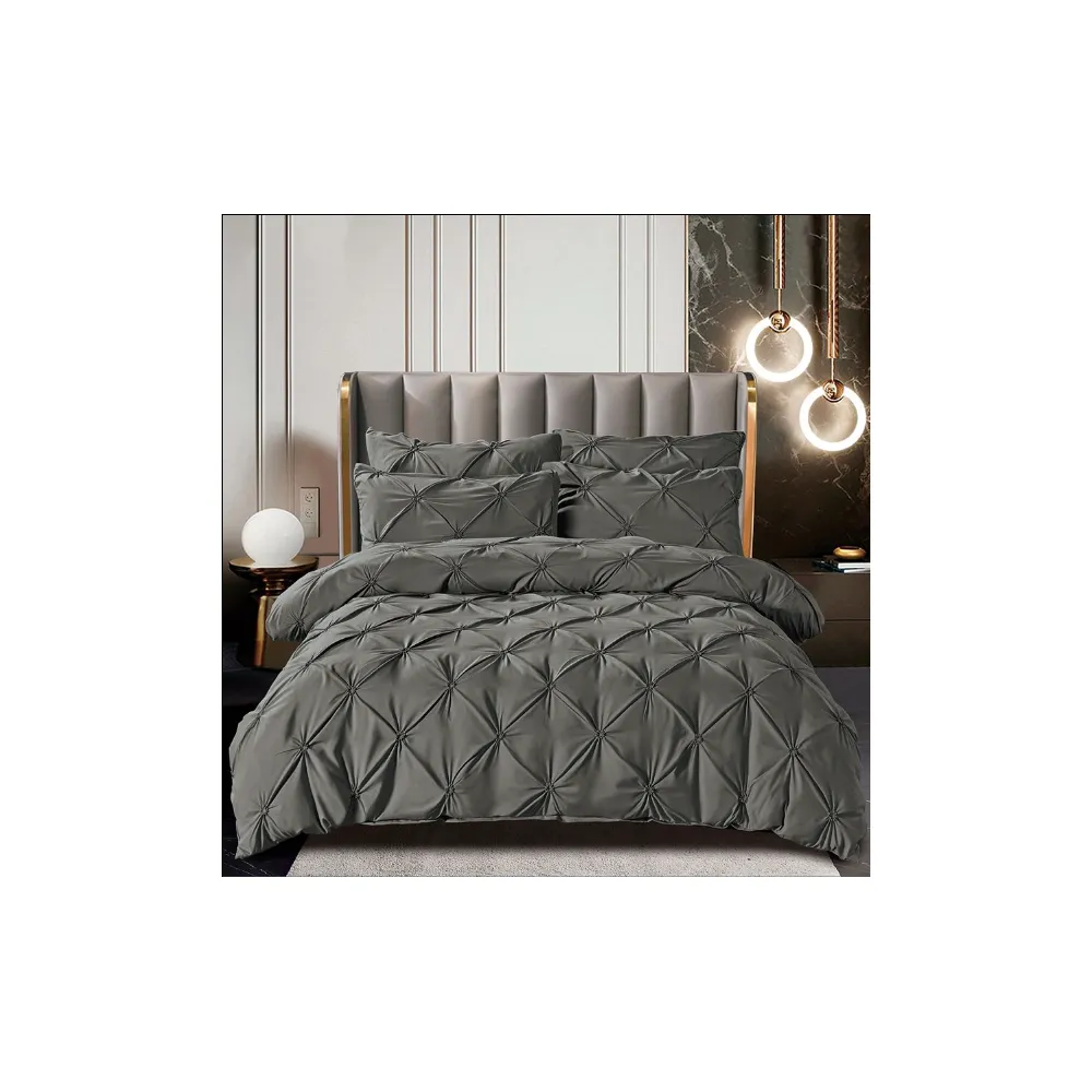 Lenjerie de Pat Finet, Pliuri Brodate, 6 pcs - JOJ103 Gri Inchis
