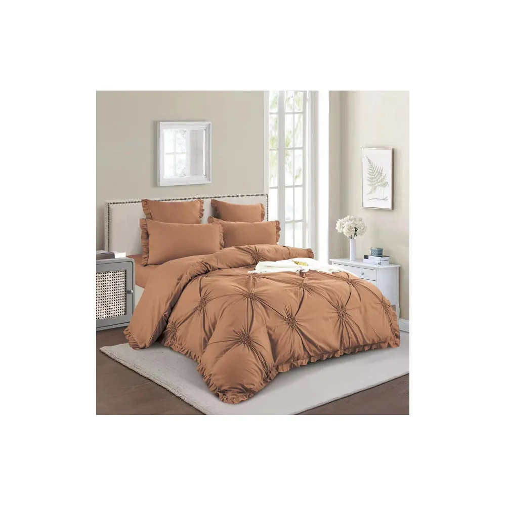 Lenjerie de Pat Finet, Pliuri Brodate cu Elastic, 6piese - SIPRT1-01 Maro Deschis
