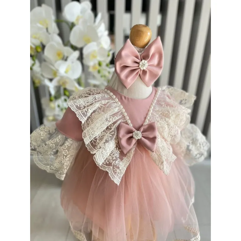 Rochita Botez Demi, cu Flori, Roz - DPH87