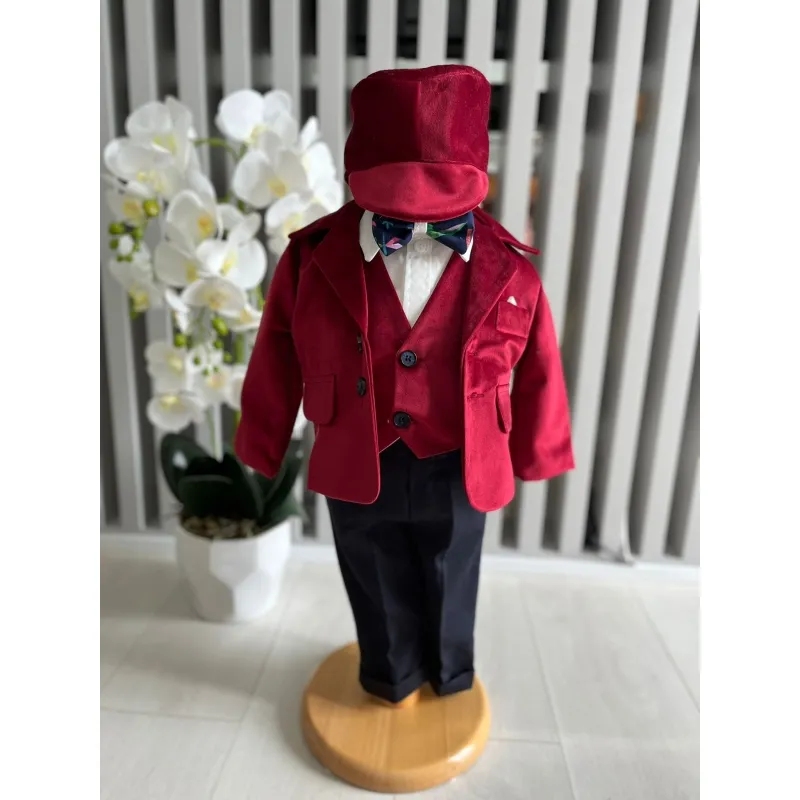 Costum botez 5 piese catifea, bordo - DPH361