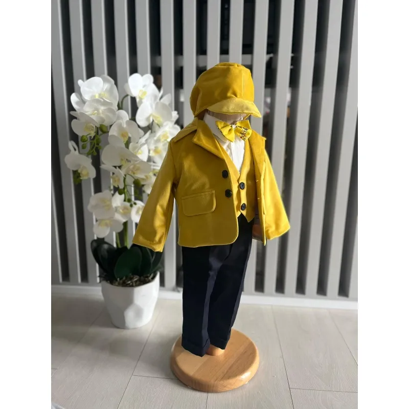 Costum botez 5 piese catifea, mustar - DPH360