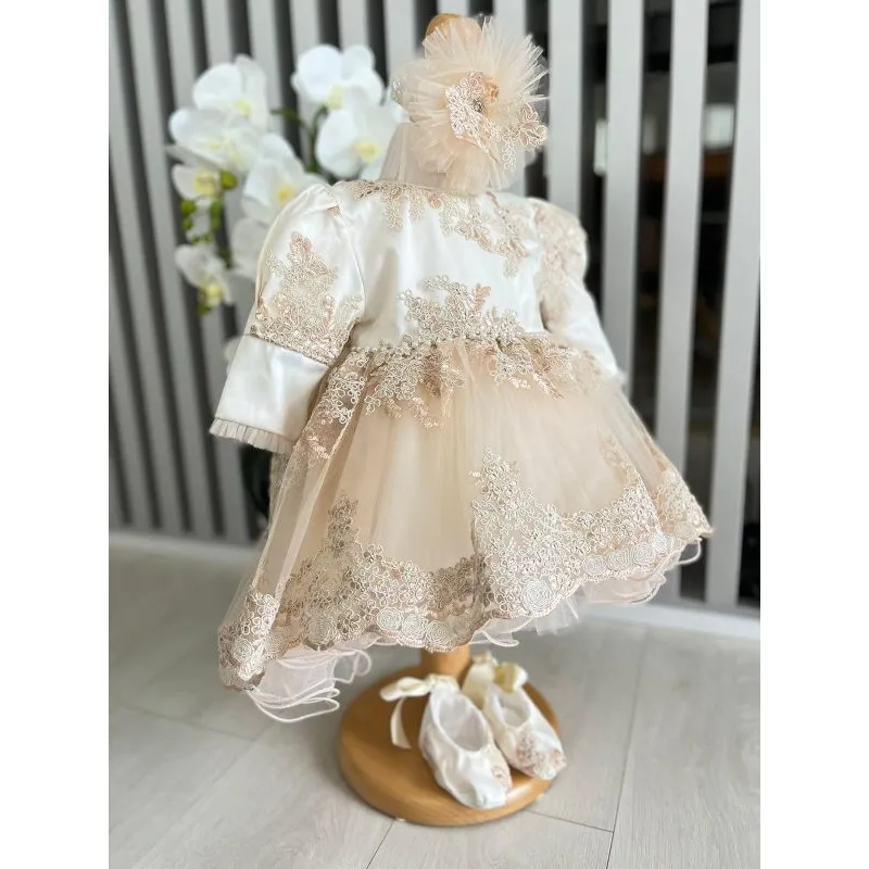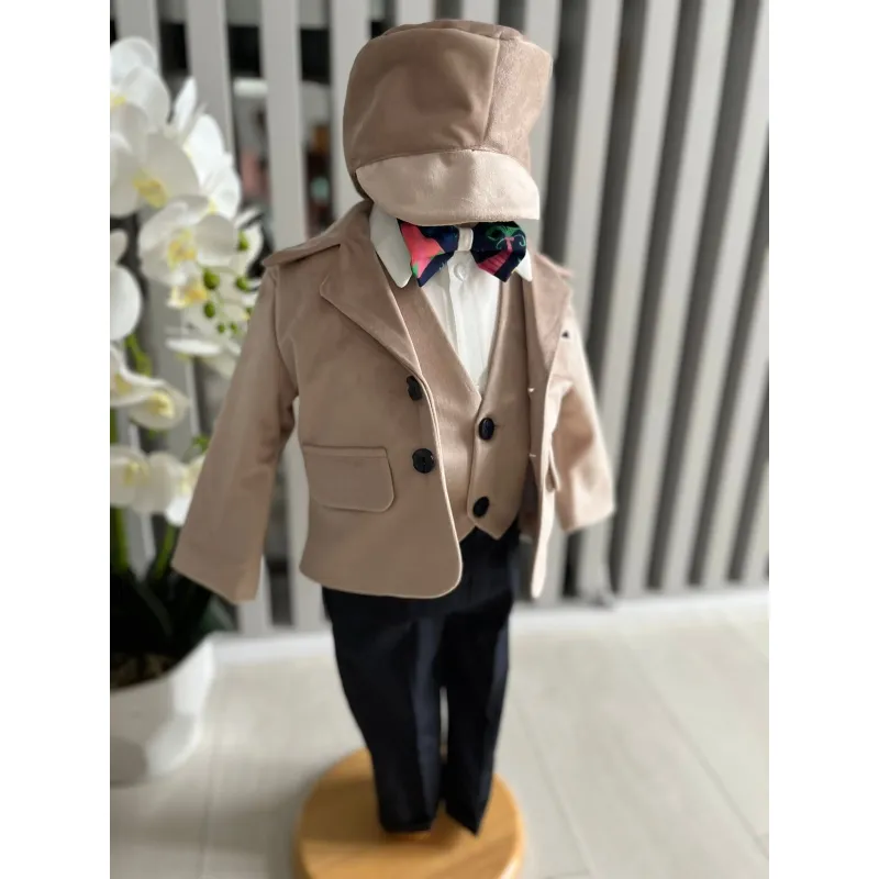 Costum botez 5 piese catifea, bej - DPH364