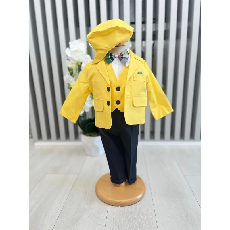 Costum botez 5 piese bumbac, galben - DPH369
