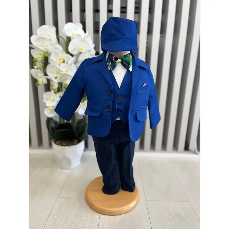 Costum botez 5 piese bumbac, albastru - DPH370
