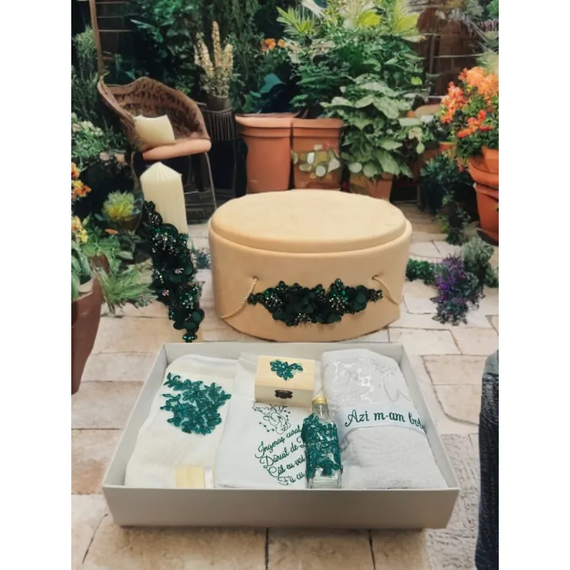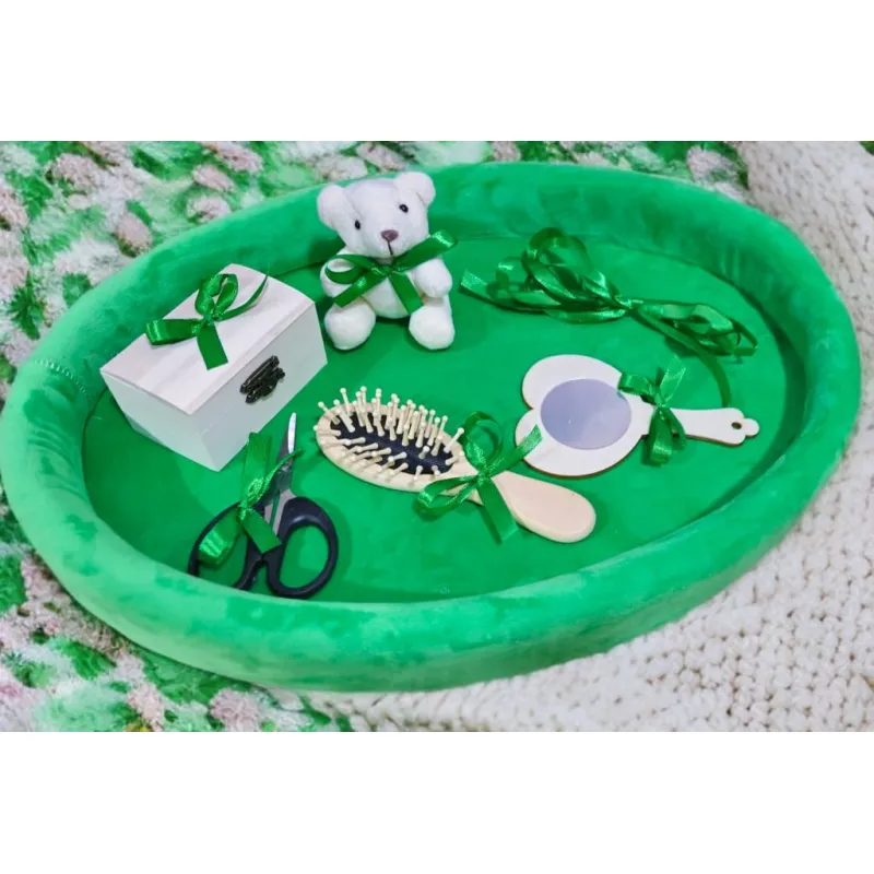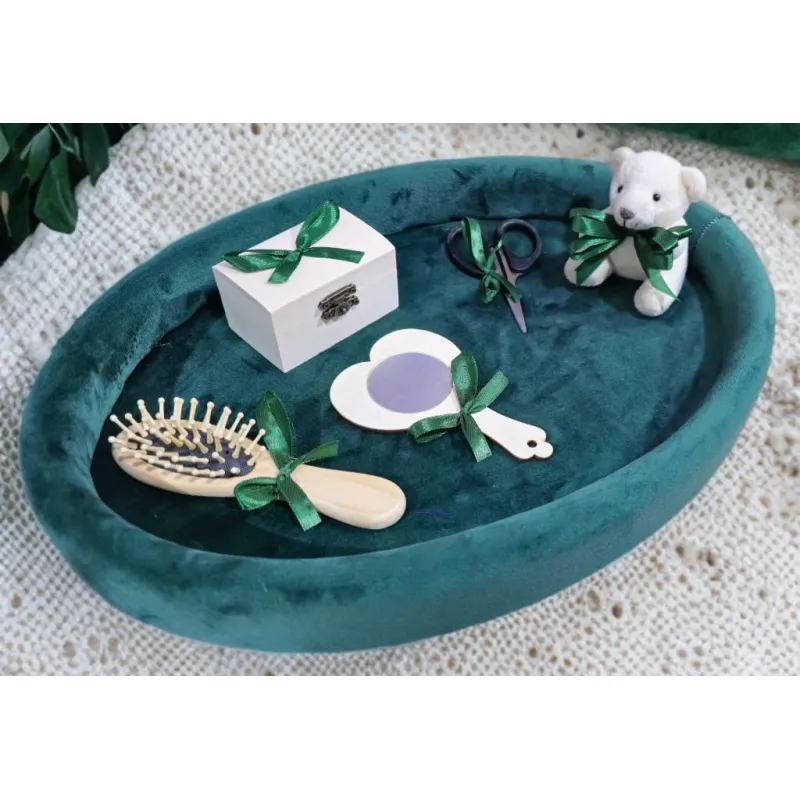 Tavita Mot/Turta, Ovala din Catifea cu 7 Piese - Verde - TPT529