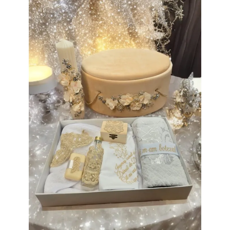 Trusou Botez cu 8 Piese + Cutie Catifea + Lumanare - TB900