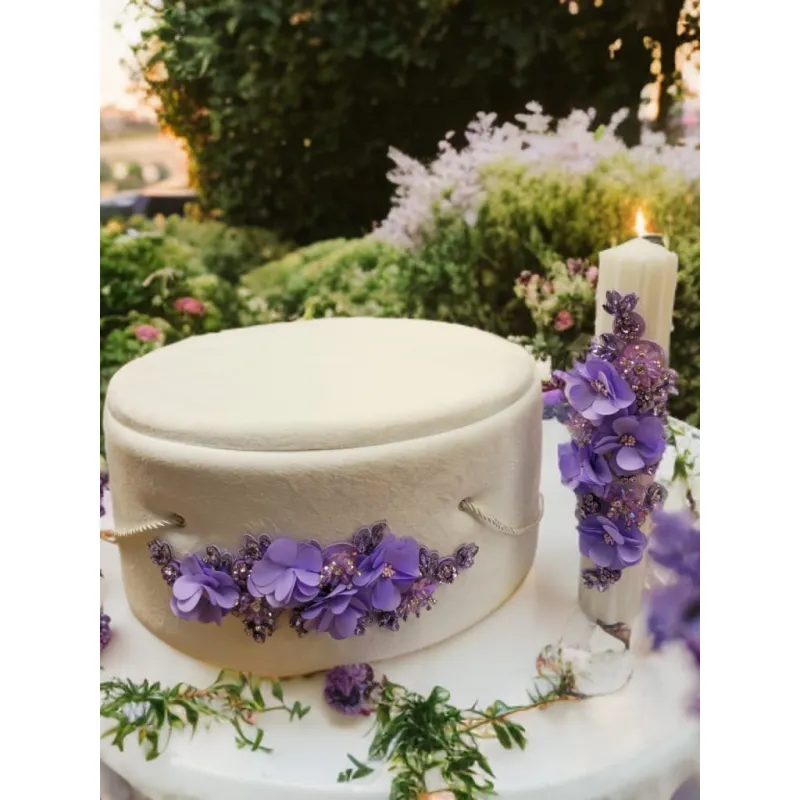 Trusou Botez cu 8 Piese + Cutie Catifea + Lumanare - Lila - TB903