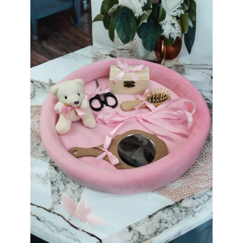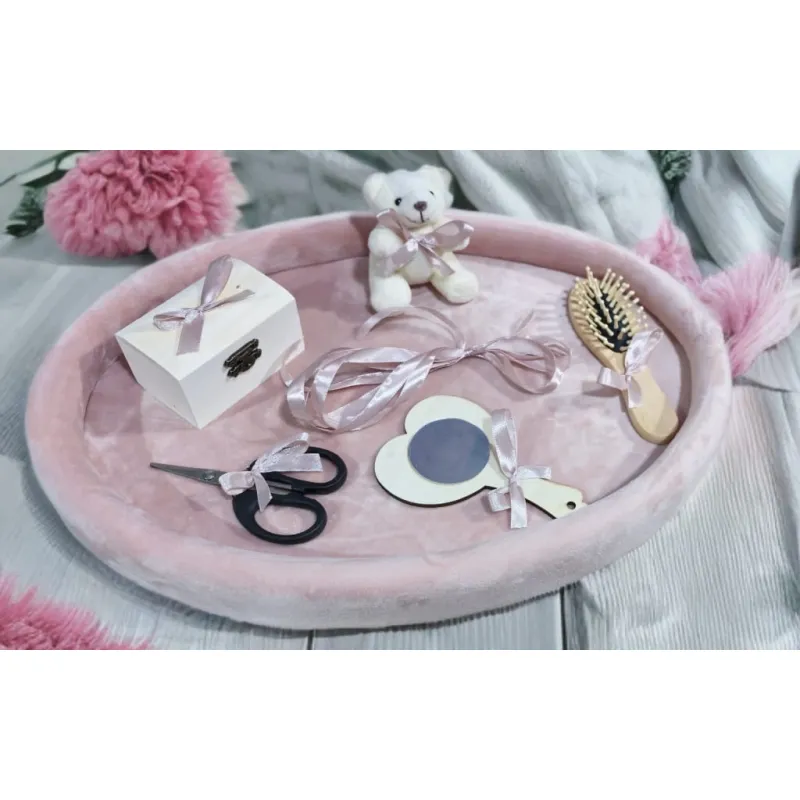 Tavita Mot/Turta, Ovala din Catifea cu 7 Piese - Roz/Nude - TPT531