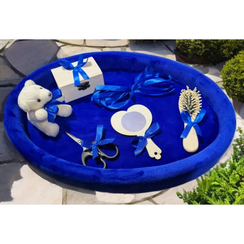 Tavita Mot/Turta, Ovala din Catifea cu 7 Piese - Albastra - TPT526