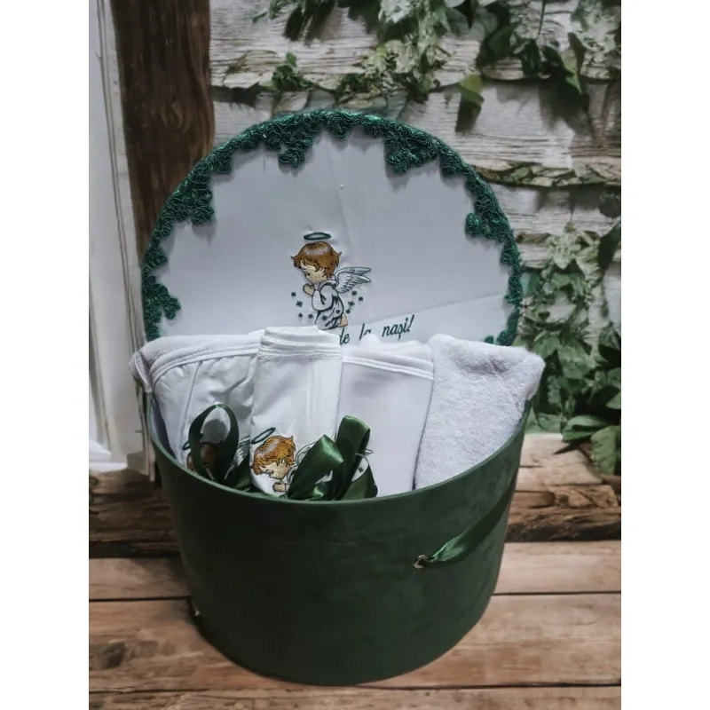 Trusou Botez cu 8 Piese in cutie de catifa brodata - Ingeras - TB811
