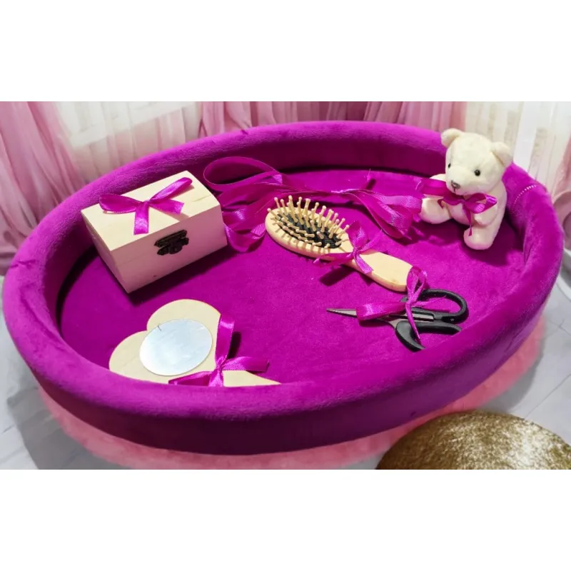 Tavita Mot/Turta, Ovala din Catifea cu 7 Piese - Roz Inchis - TPT527