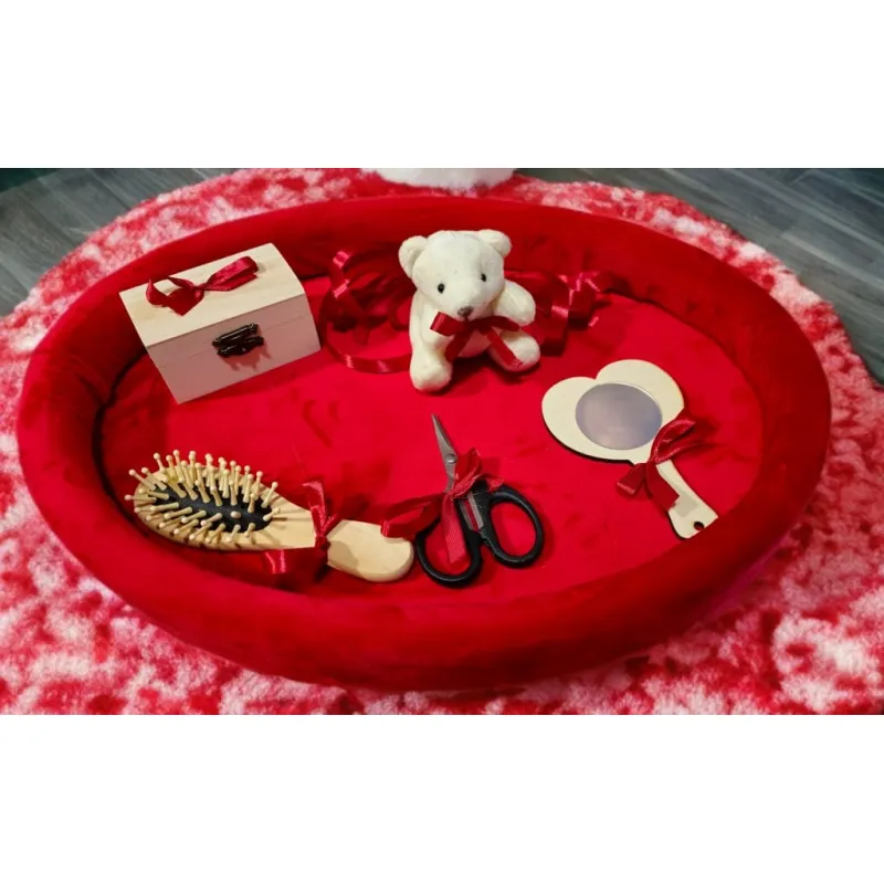 Tavita Mot/Turta, Ovala din Catifea cu 7 Piese - Rosie - TPT528