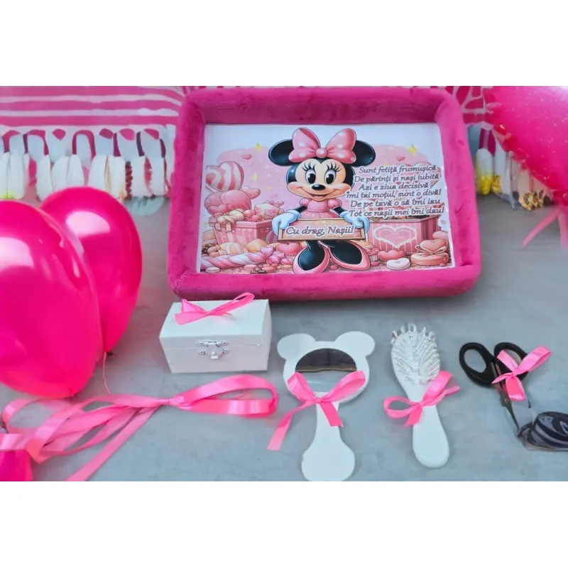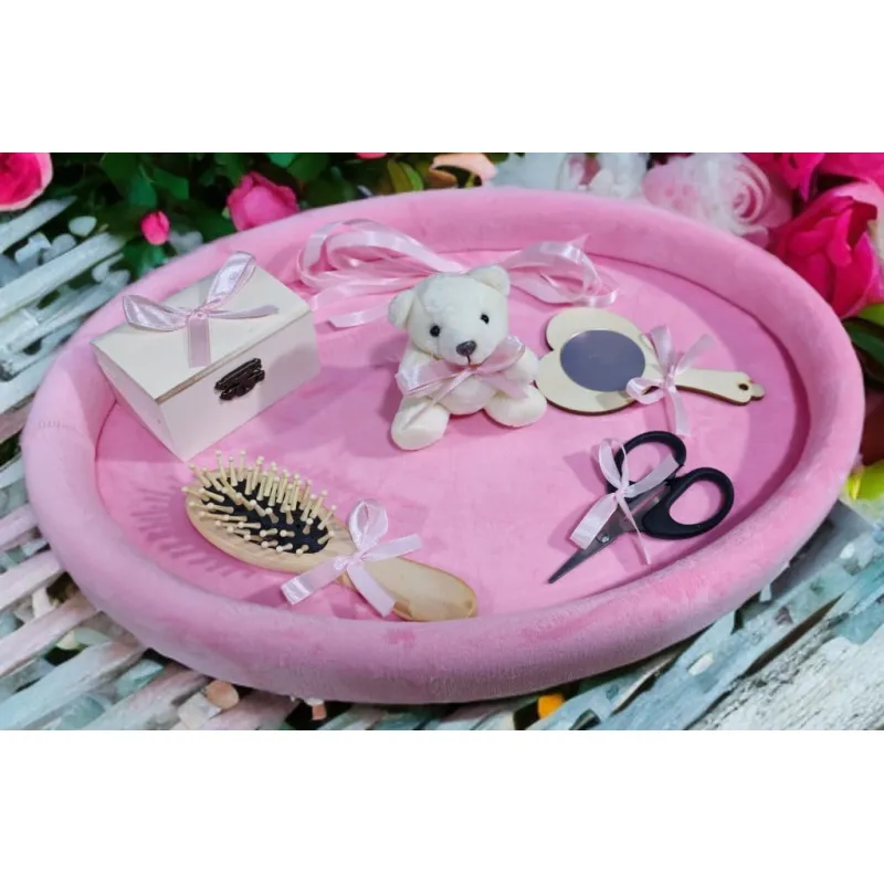 Tavita Mot/Turta, Ovala din Catifea cu 7 Piese - Roz - TPT532