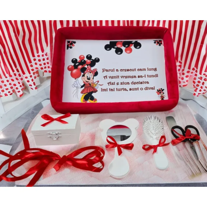 Tavita Mot/Turta, Buretata din Catifea cu 7 Piese - Rosie - TPT508