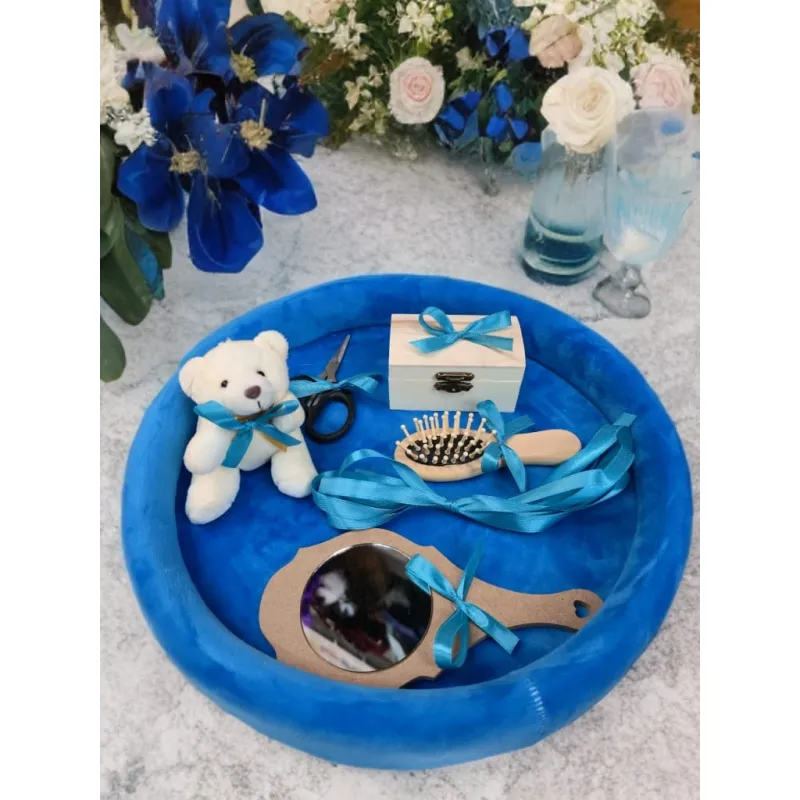 Tavita Mot/Turta, Buretata din Catifea cu 6 Piese - Albastra - TPT522