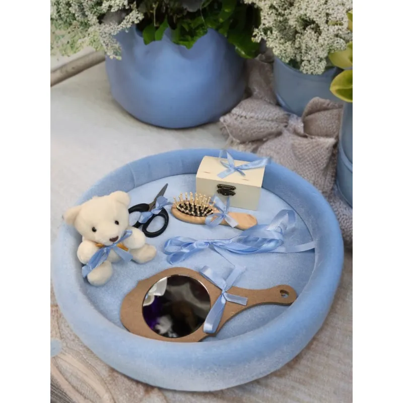 Tavita Mot/Turta, Buretata din Catifea cu 7 Piese - Albastru Deschis - TPT506