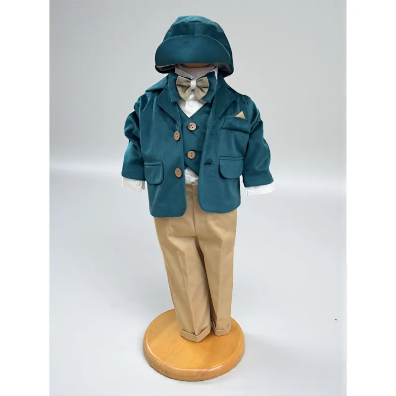 Costum botez catifea verde- DPH304