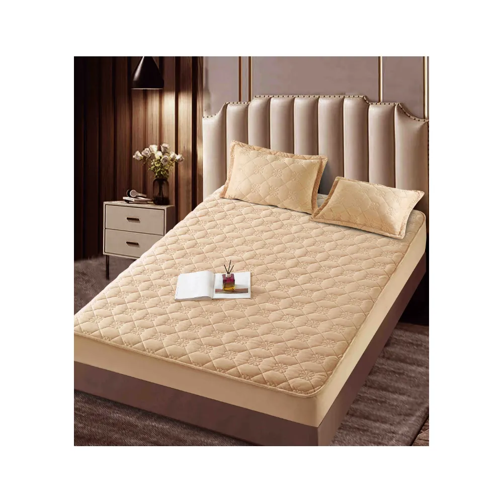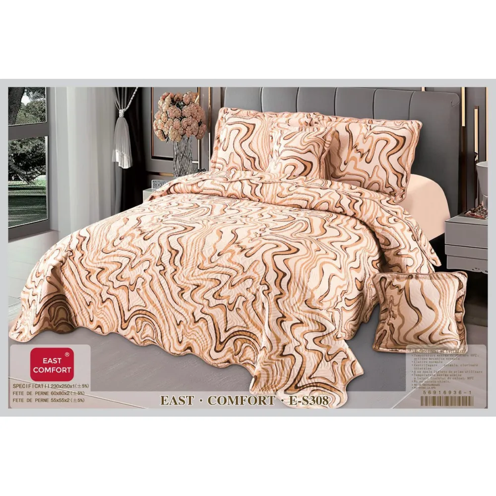 Husa de Saltea din Catifea + 2 Fete de Perna , Maro Deschis - JOJ545