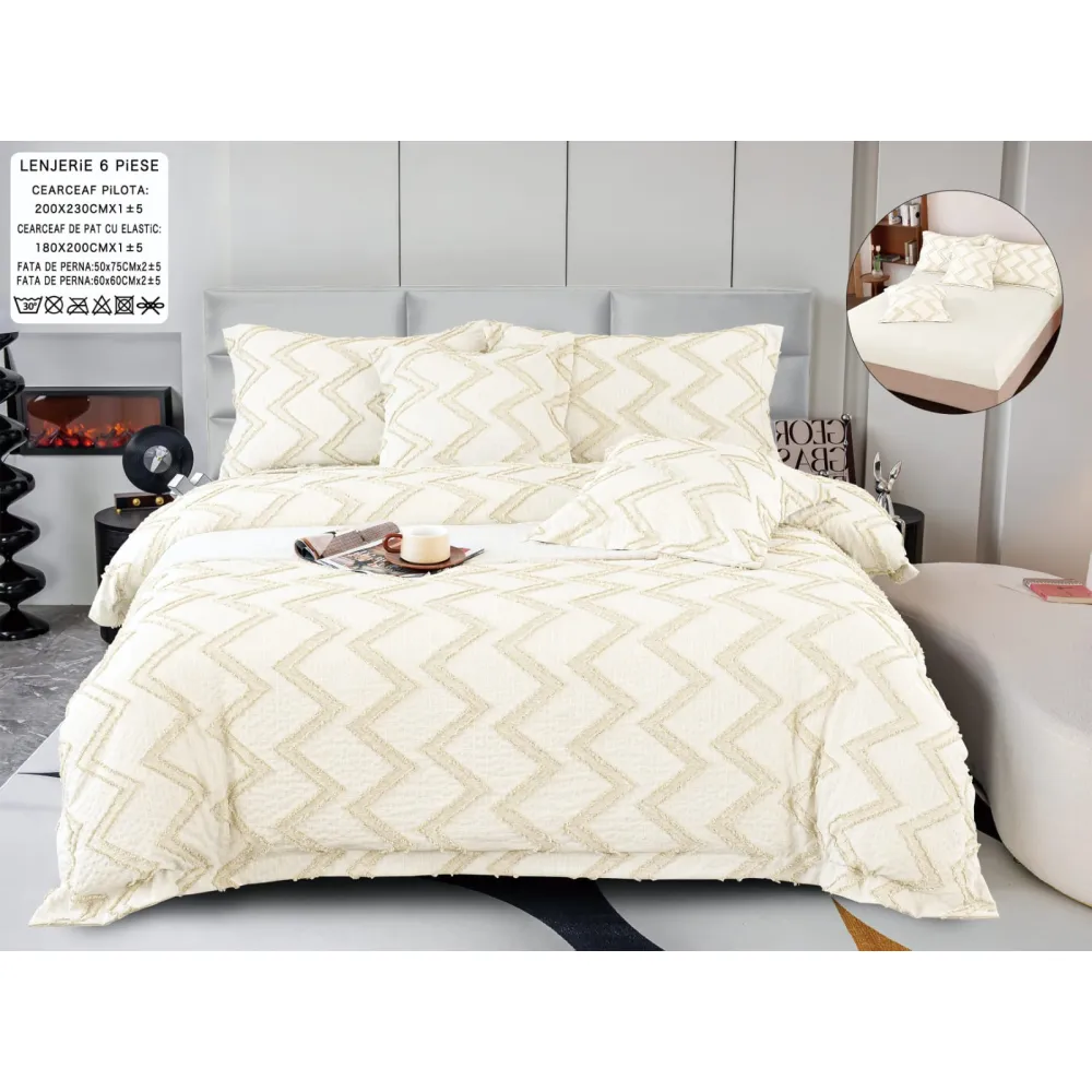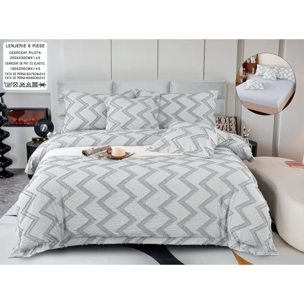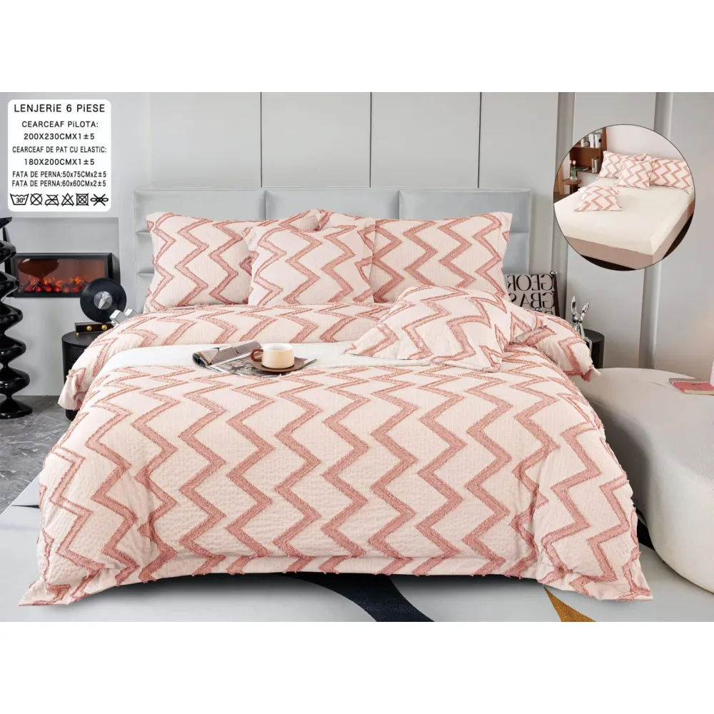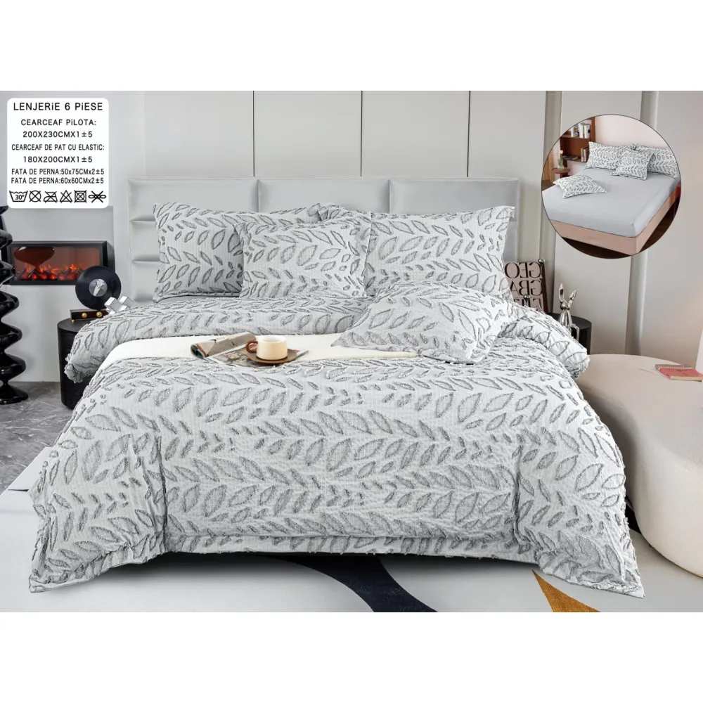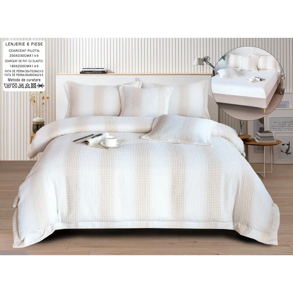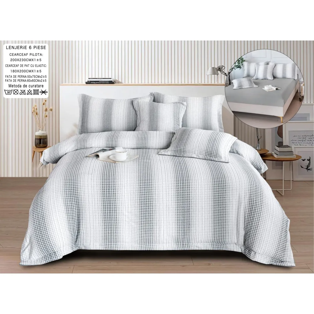 Lenjerie Bumbac Fin, Gofrat 6 Piese cu Elastic - PIT297