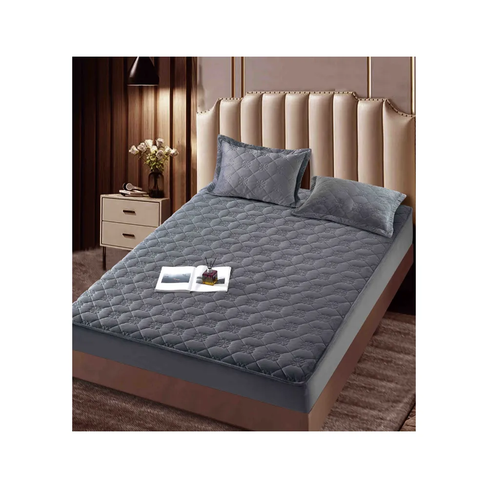 Husa de Saltea din Catifea + 2 Fete de Perna , Gri Deschis - JOJ548