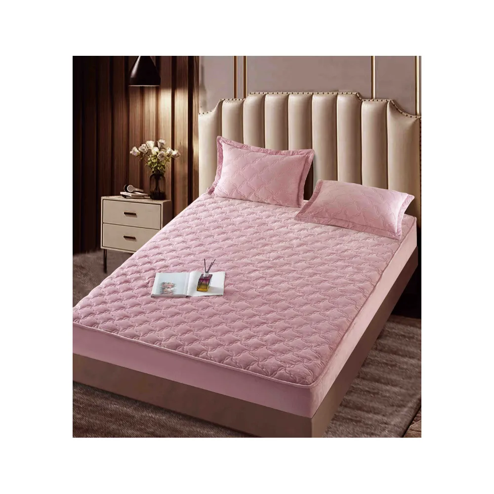 Husa pentru saltea tip topper cu elastic + 2 Fete de perna catifea, Roz Pudra 180x200cm - JOJ560