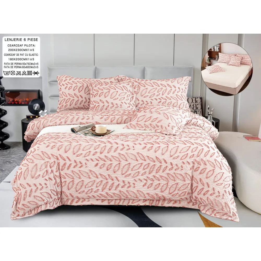 Lenjerie Bumbac Fin, Gofrat 6 Piese cu Elastic - PIT298