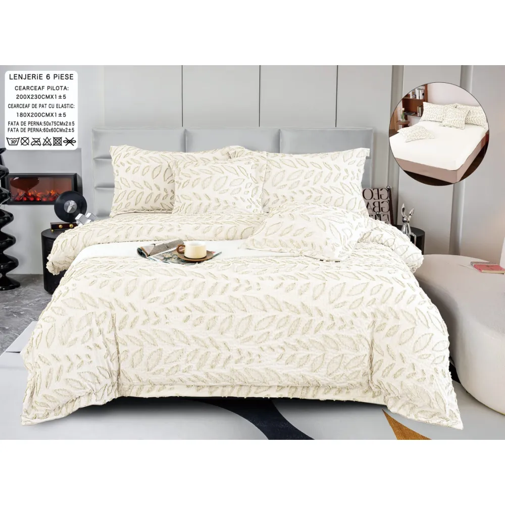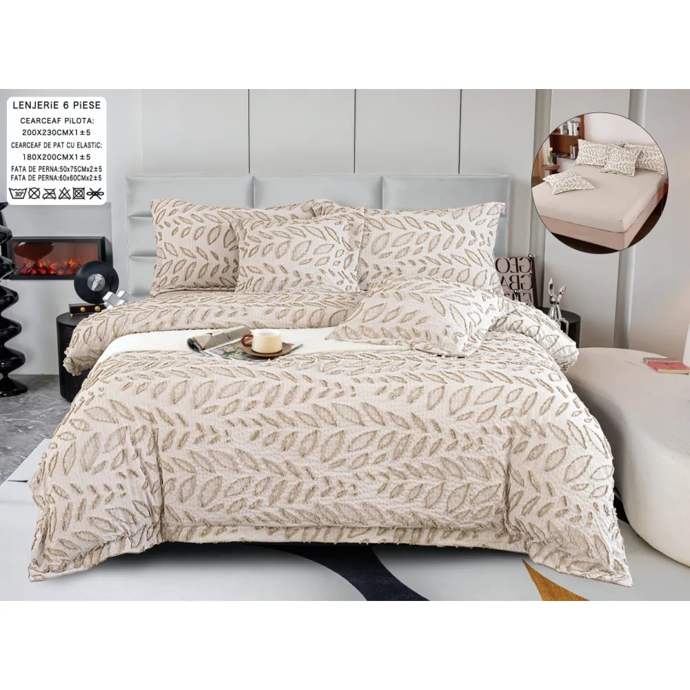 Lenjerie Bumbac Fin, Gofrat 6 Piese cu Elastic - PIT294