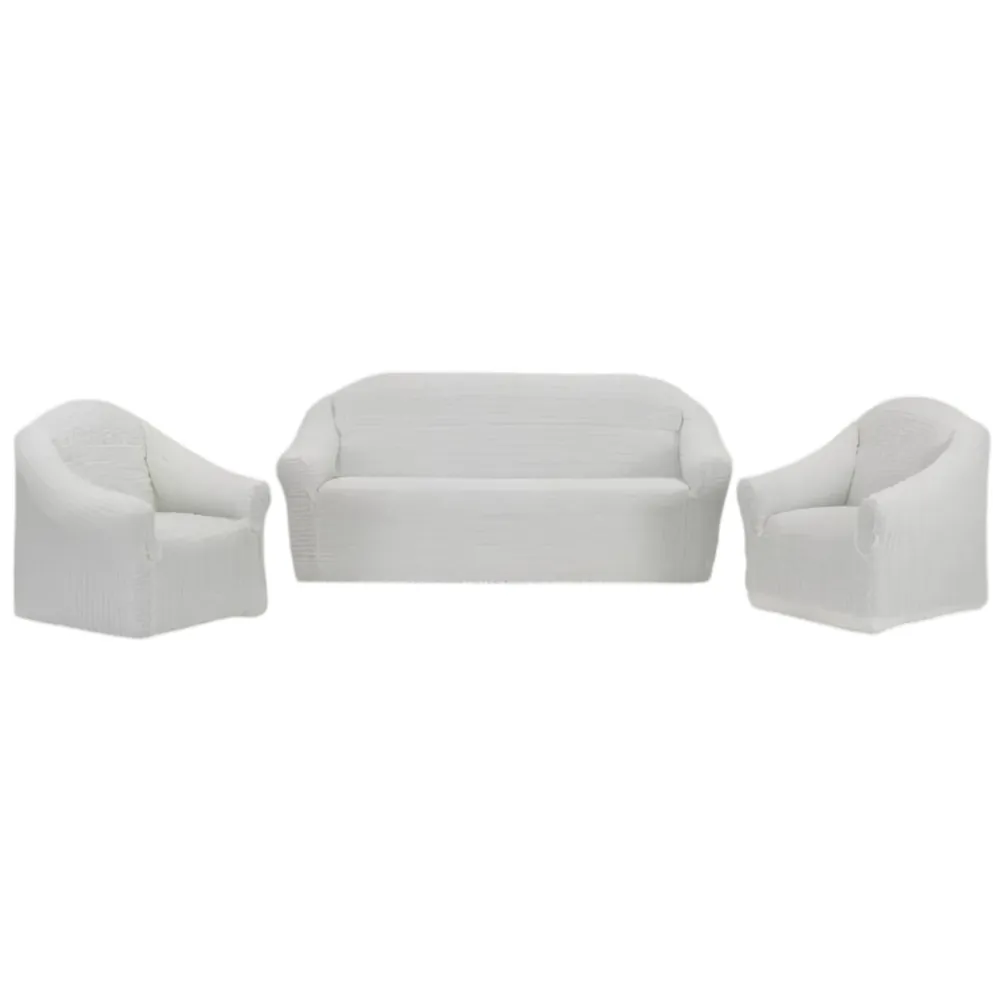 Huse Elastice si Creponate fara Volane, Canapea 3 Persoane + 2 Fotolii, Alb