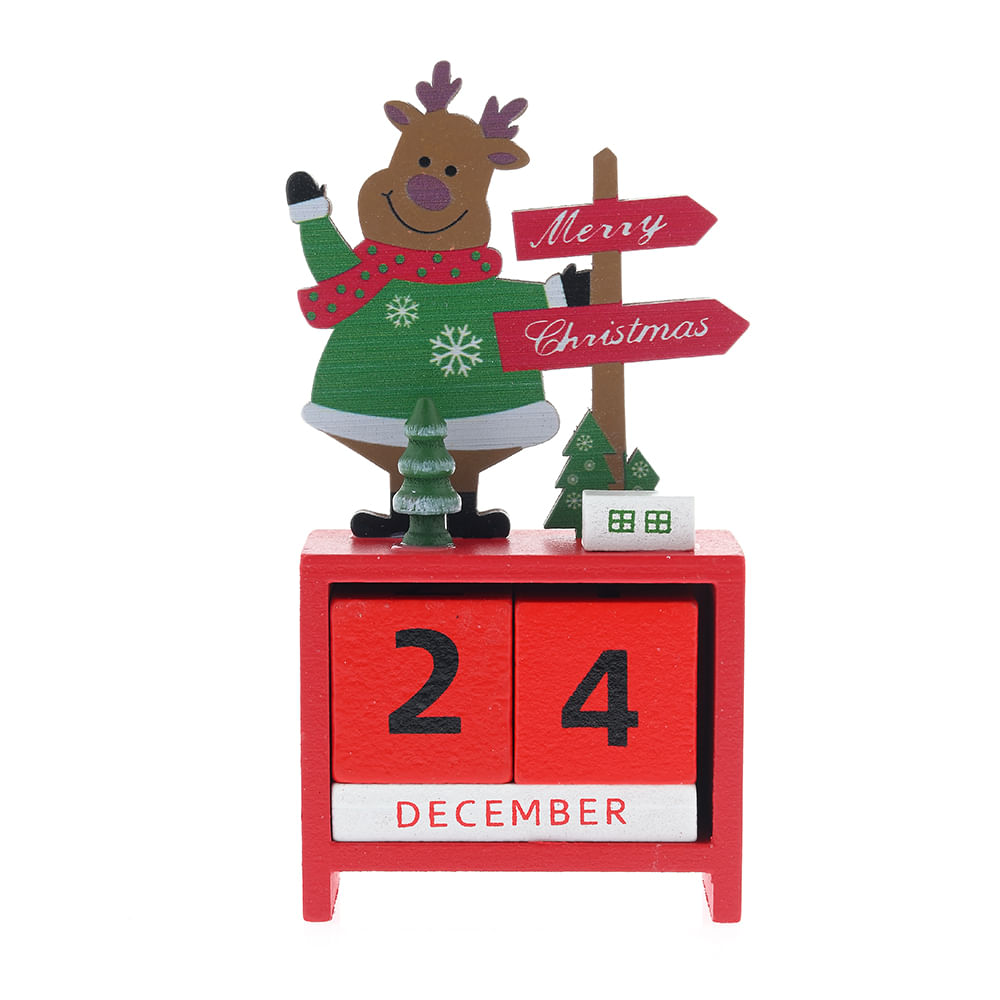 Calendar decorativ din lemn cu ren 15 cm