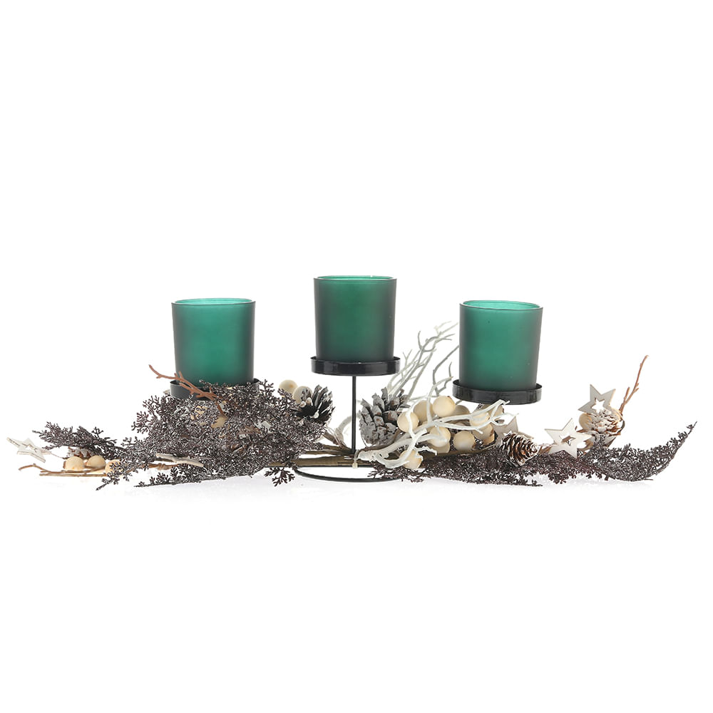 Suport triplu pentru lumanari cu crengute si conuri