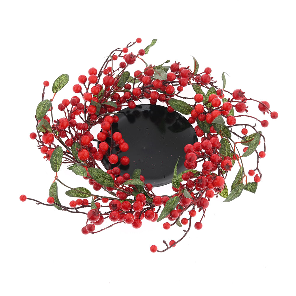 Suport decorativ pentru lumanare cu fructe rosii si frunze verzi