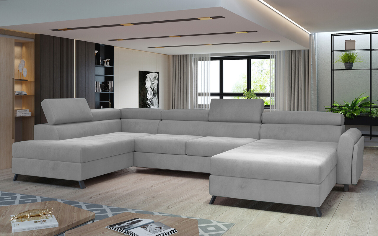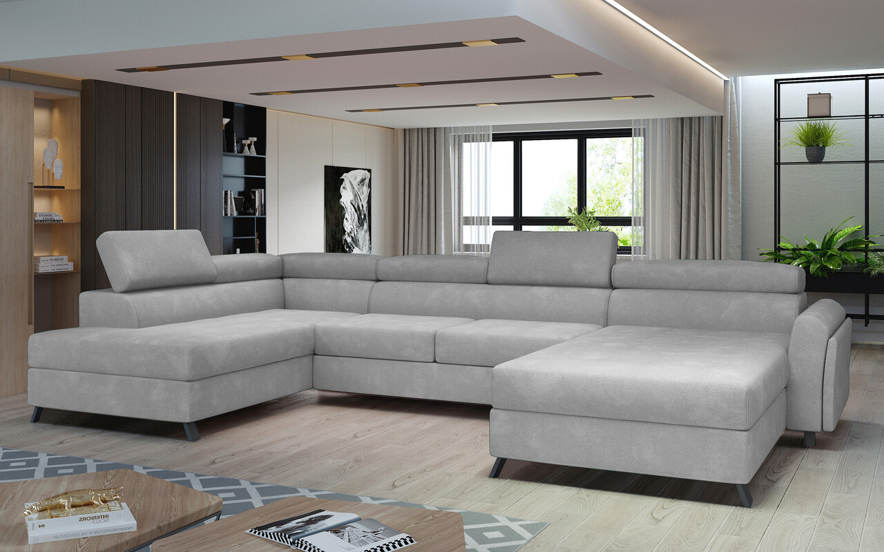 Coltar extensibil stanga 3 locuri ELTAP, LT-03ROY, Feraria, 358x202x93 cm, lemn/poliester, gri deschis