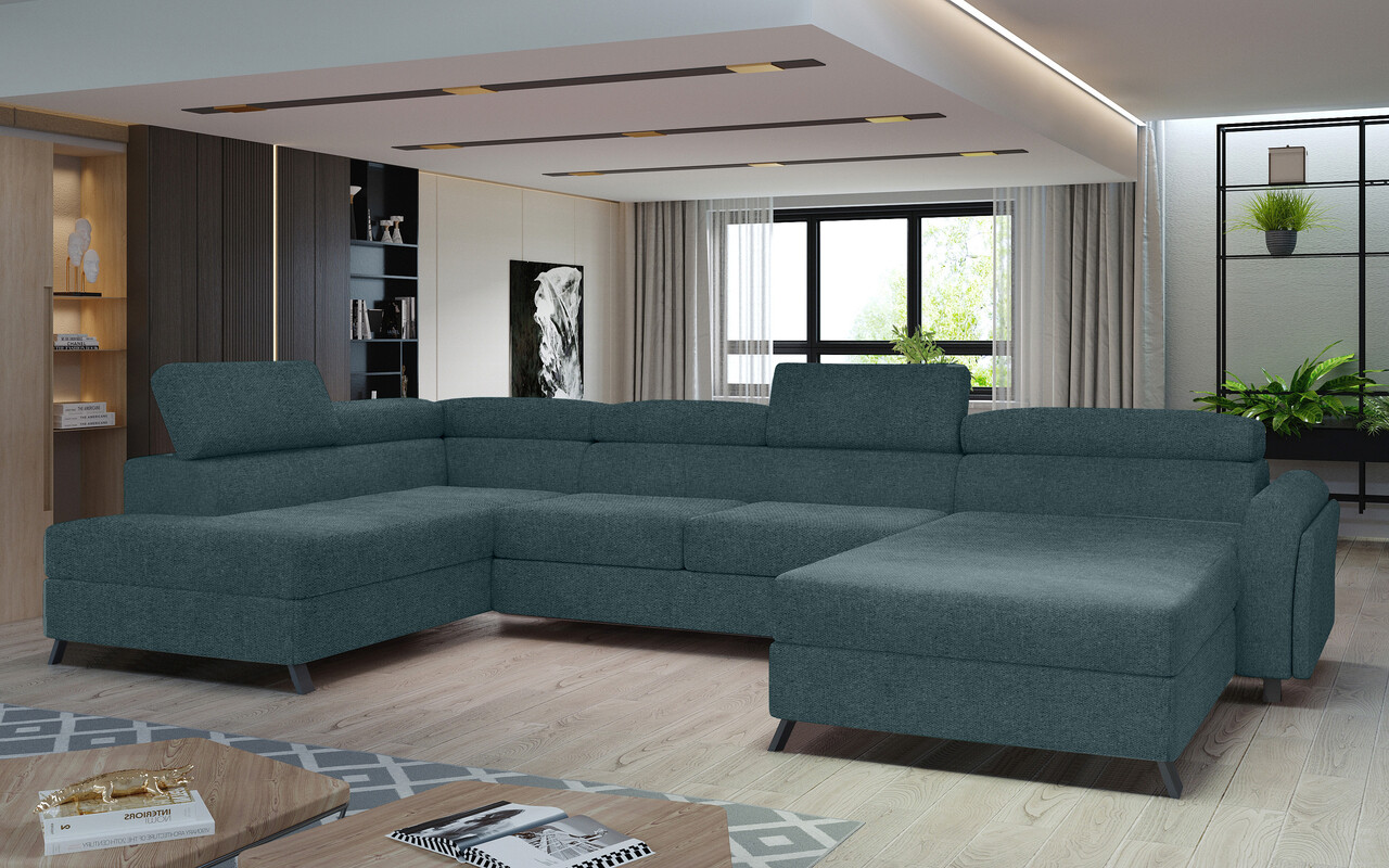 Coltar extensibil dreapta 5 locuri ELTAP, Jos-37, Josette, 370x190x98 cm, lemn/poliester, albastru inchis