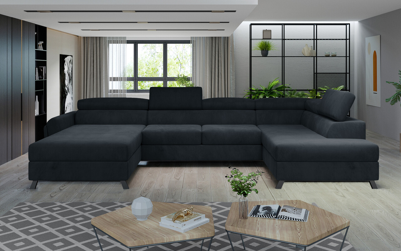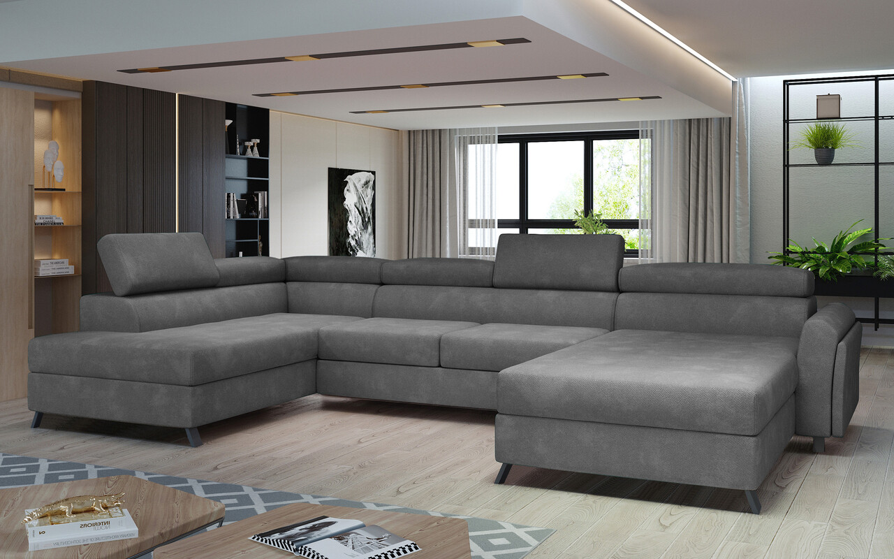 Coltar extensibil stanga 3 locuri ELTAP, LT-05ROY, Feraria, 358x202x93 cm, lemn/poliester, gri antracit