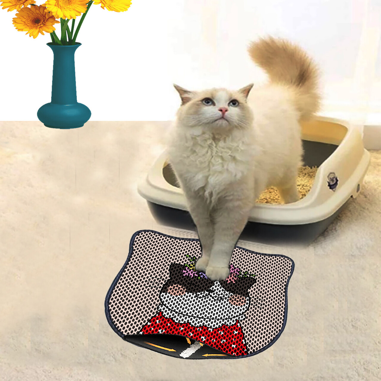 Covoras litiera pentru colectarea granulelor de nisip, Paws & Whiskers, Kdkafa0184, 50% PVC/50% poliester, Multicolor