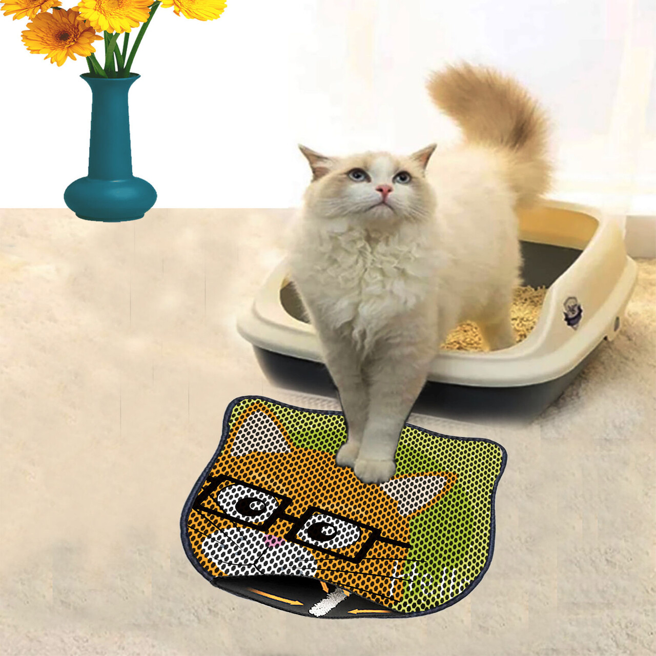 Covoras litiera pentru colectarea granulelor de nisip, Paws & Whiskers, Kdkafa0165, 50% PVC/50% poliester, Multicolor