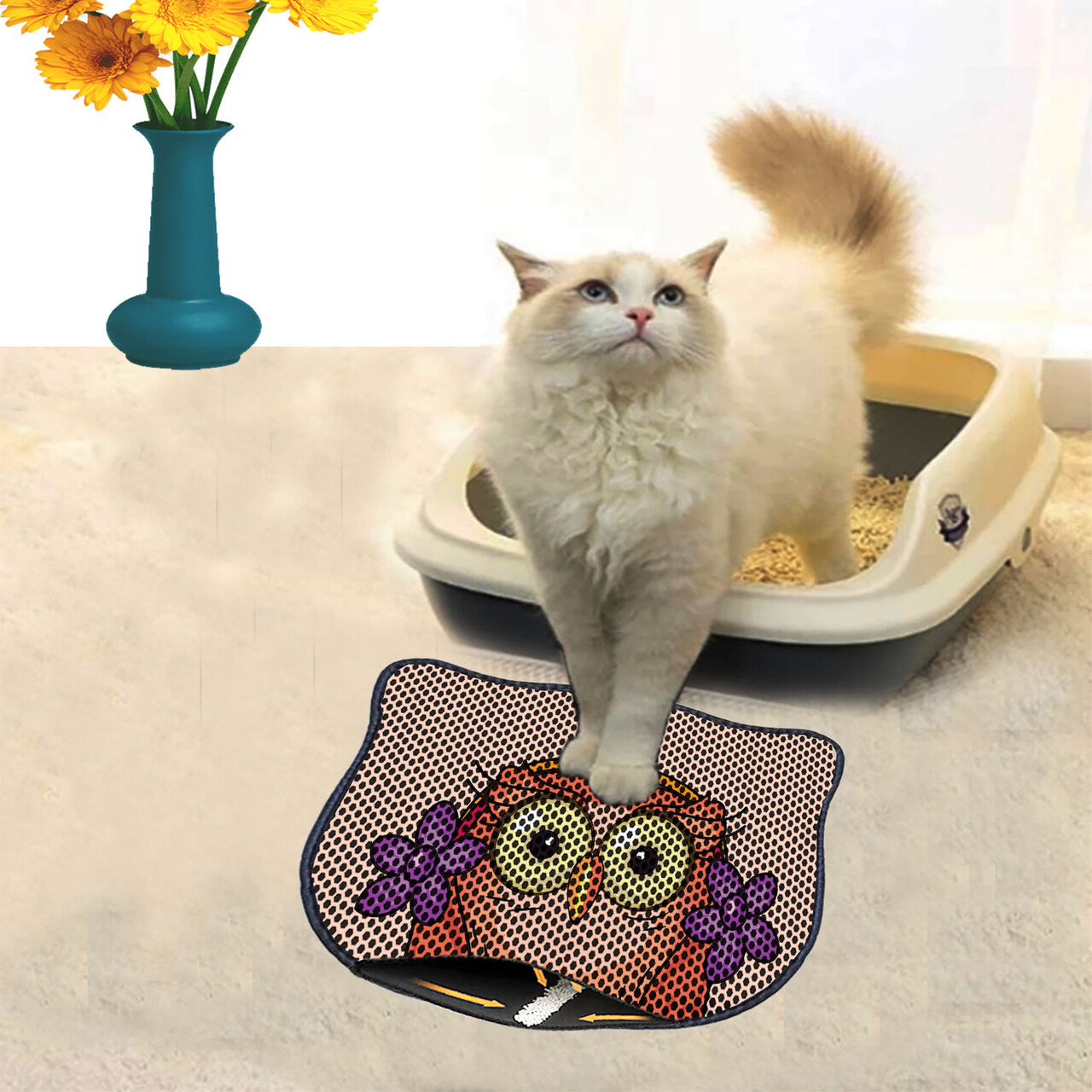 Covoras litiera pentru colectarea granulelor de nisip, Paws & Whiskers, Kdkafa0252, 50% PVC/50% poliester, Multicolor
