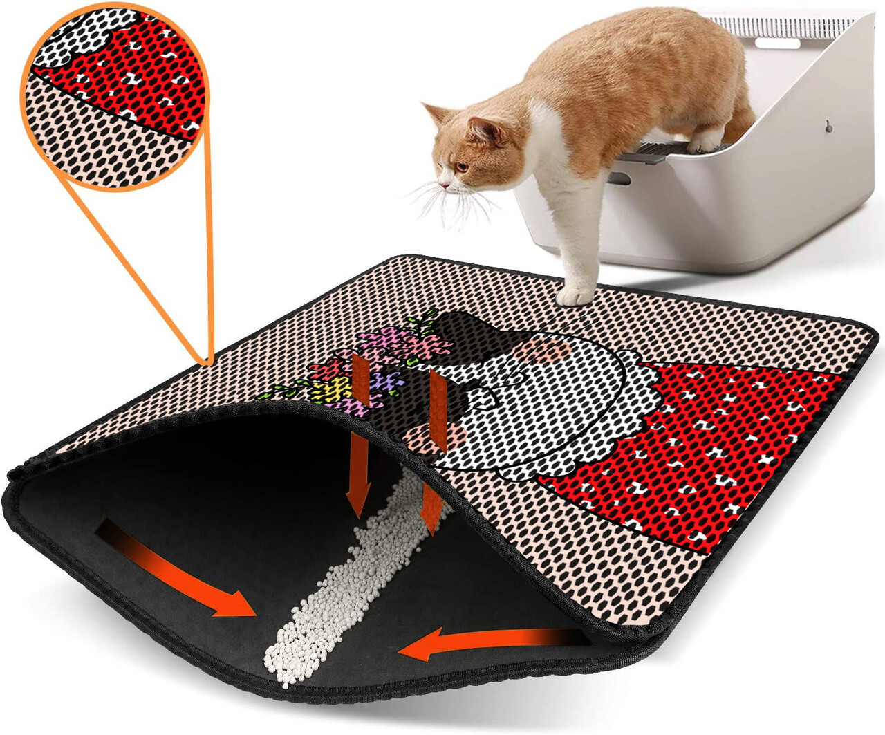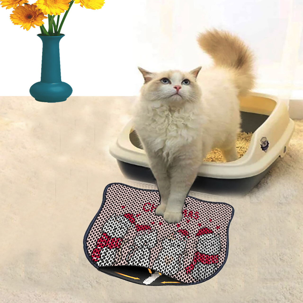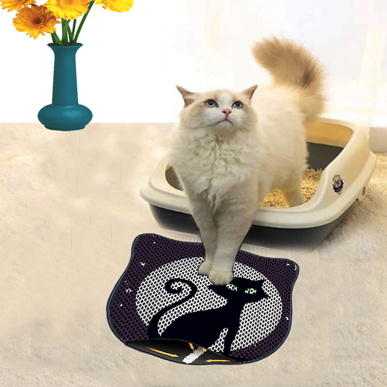Covoras litiera pentru colectarea granulelor de nisip, Paws & Whiskers, Nrszn0124, 50% PVC/50% poliester, Multicolor