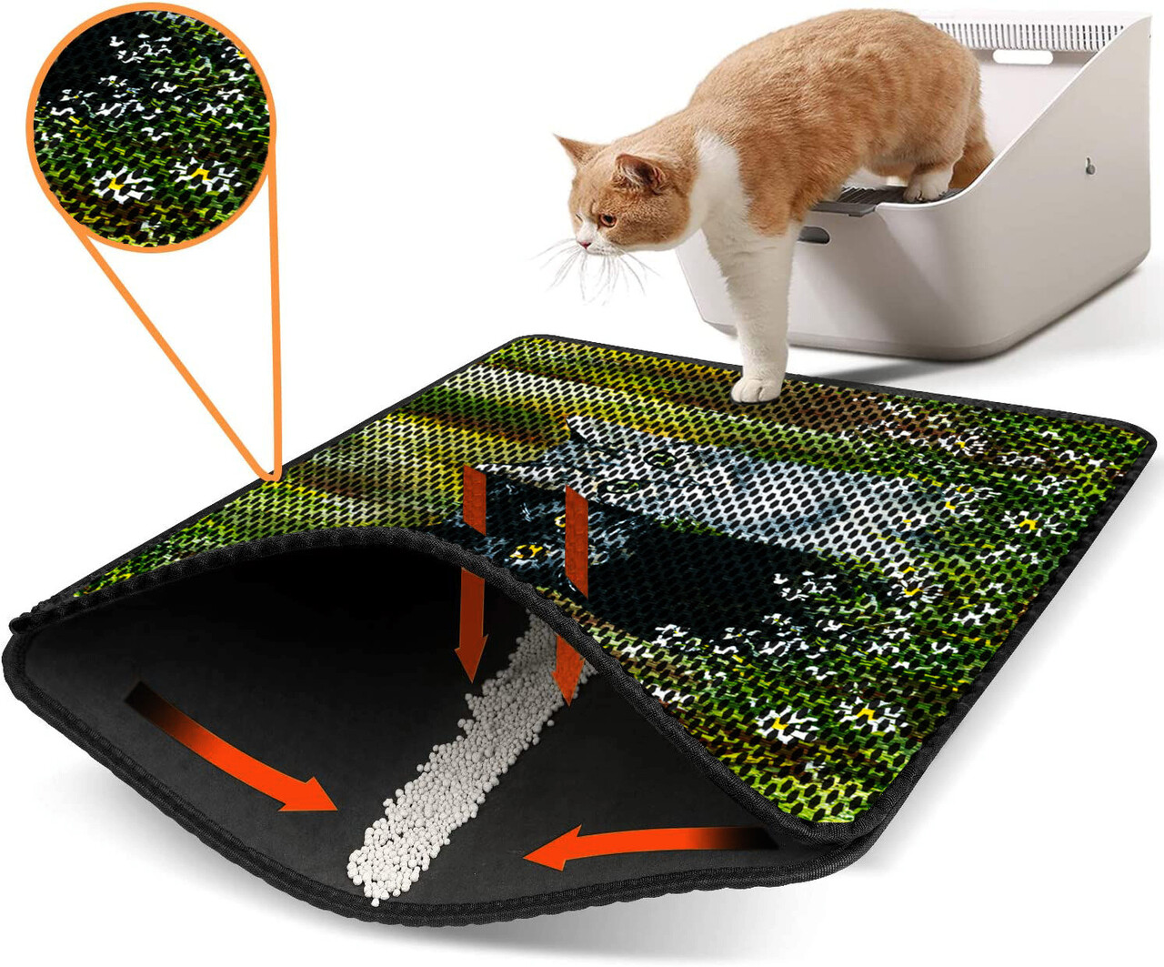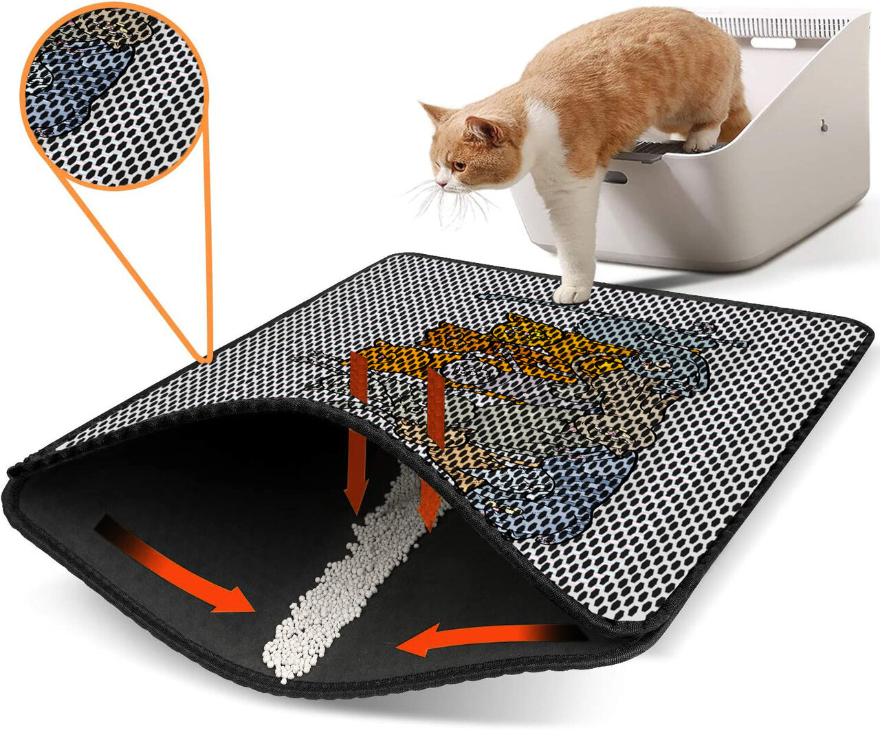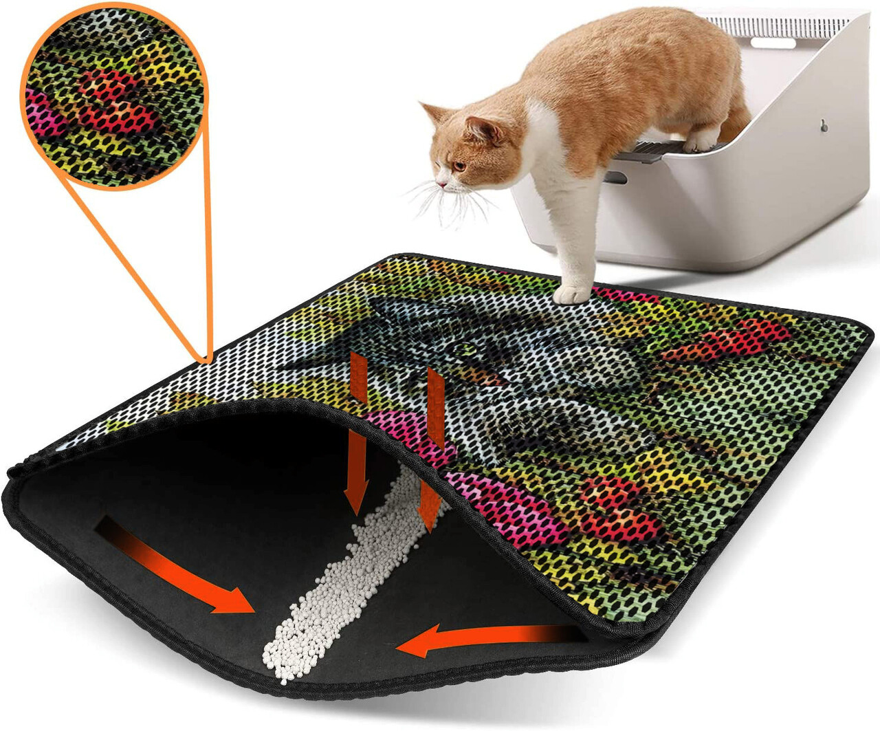 Covoras litiera pentru colectarea granulelor de nisip, Paws & Whiskers, Nrszn0002, 50% PVC/50% poliester, Multicolor