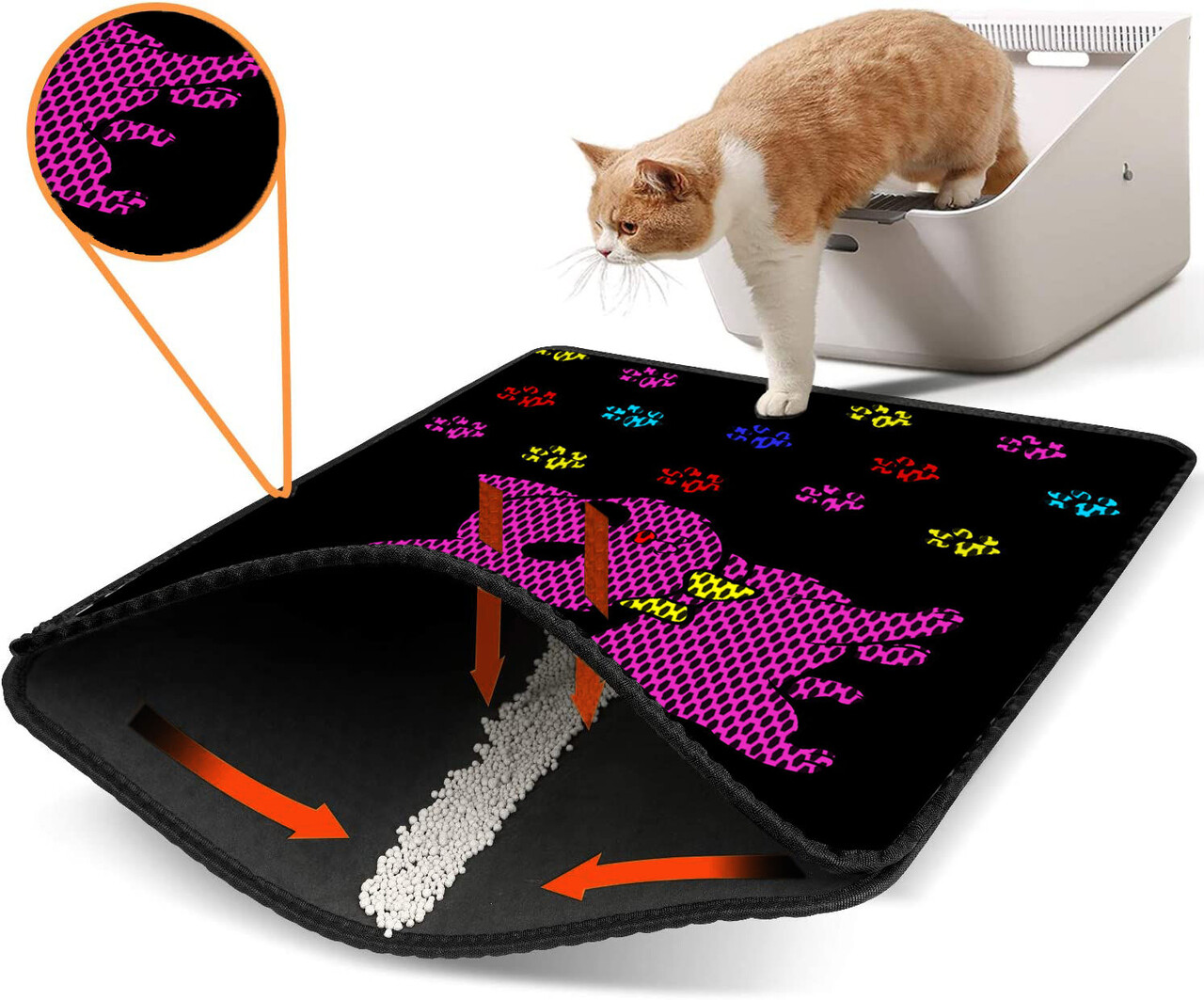 Covoras litiera pentru colectarea granulelor de nisip, Paws & Whiskers, Nrszn0156, 50% PVC/50% poliester, Multicolor