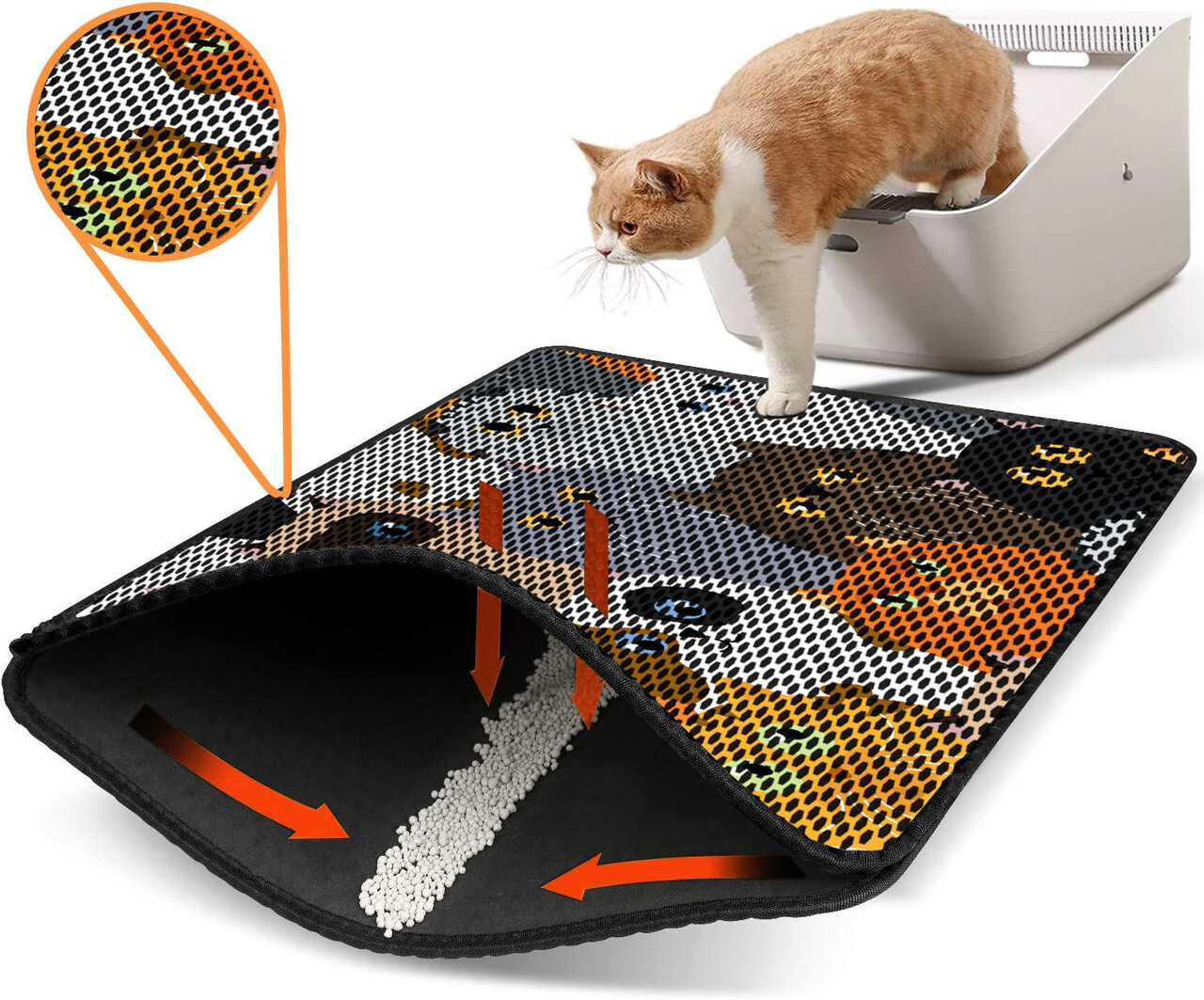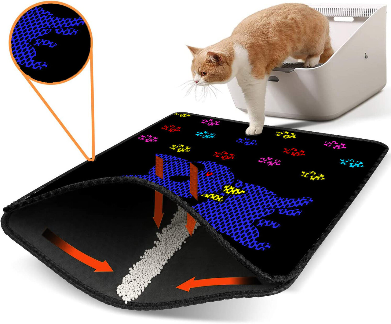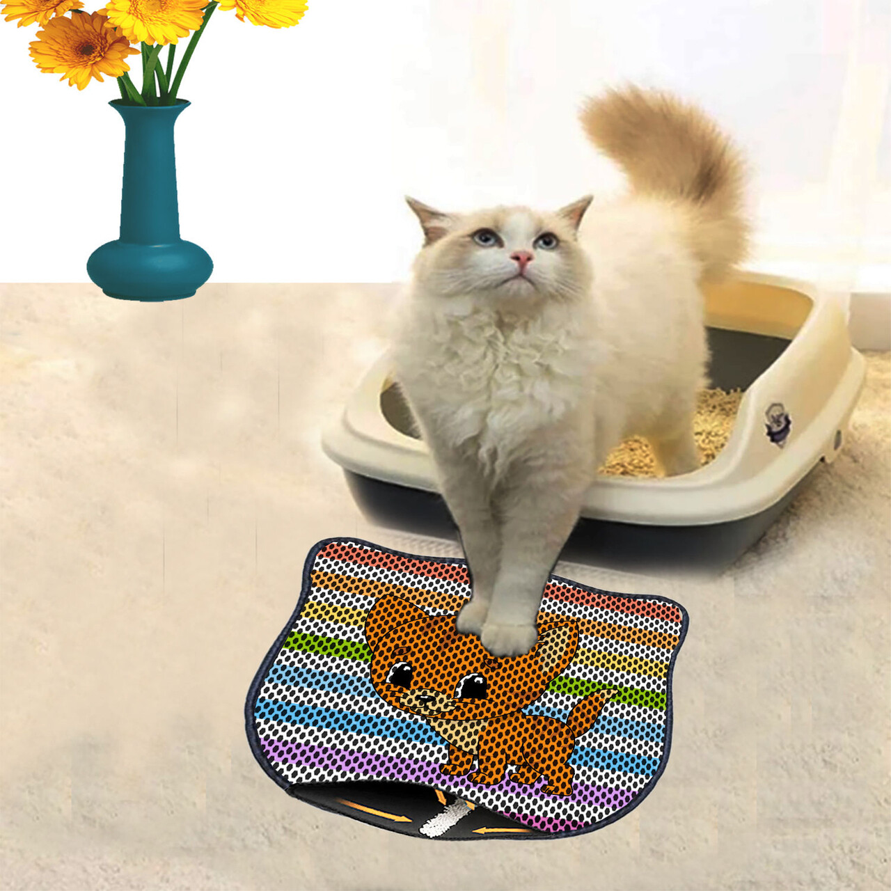 Covoras litiera pentru colectarea granulelor de nisip, Paws & Whiskers, Nrszn0123, 50% PVC/50% poliester, Multicolor