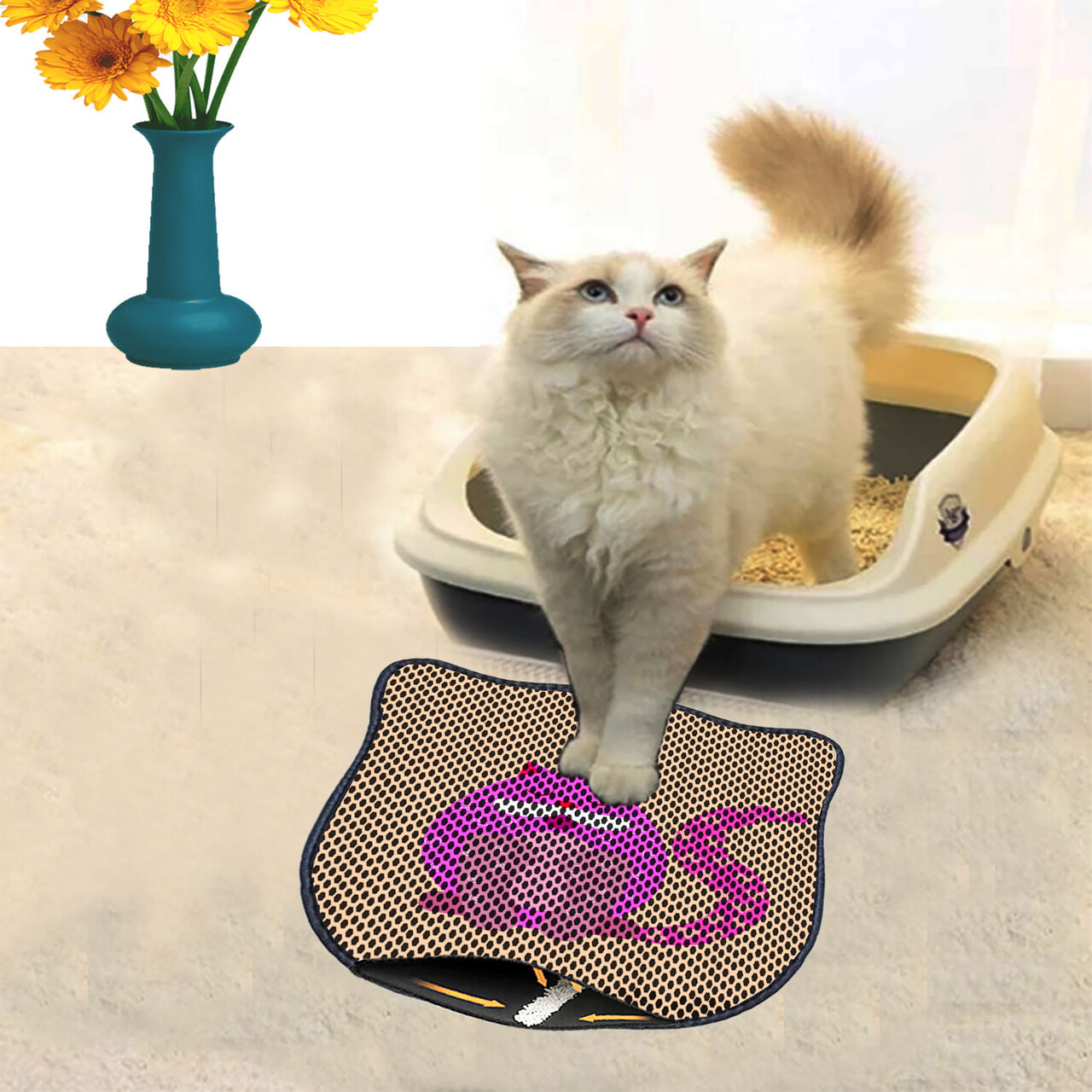 Covoras litiera pentru colectarea granulelor de nisip, Paws & Whiskers, Nrszn0139, 50% PVC/50% poliester, Multicolor