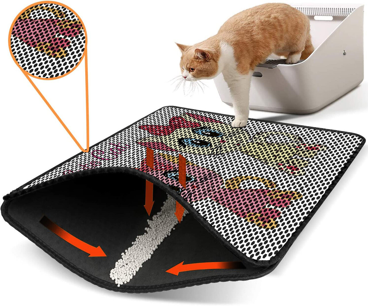 Covoras litiera pentru colectarea granulelor de nisip, Paws & Whiskers, Nrszn0110, 50% PVC/50% poliester, Multicolor