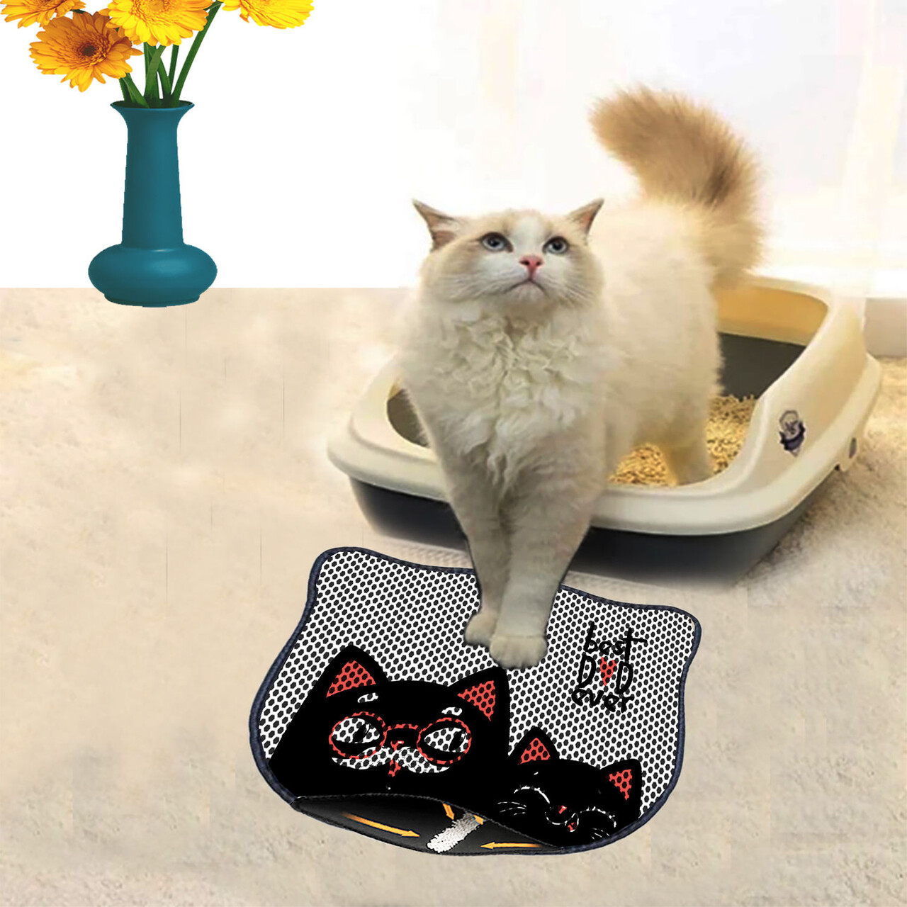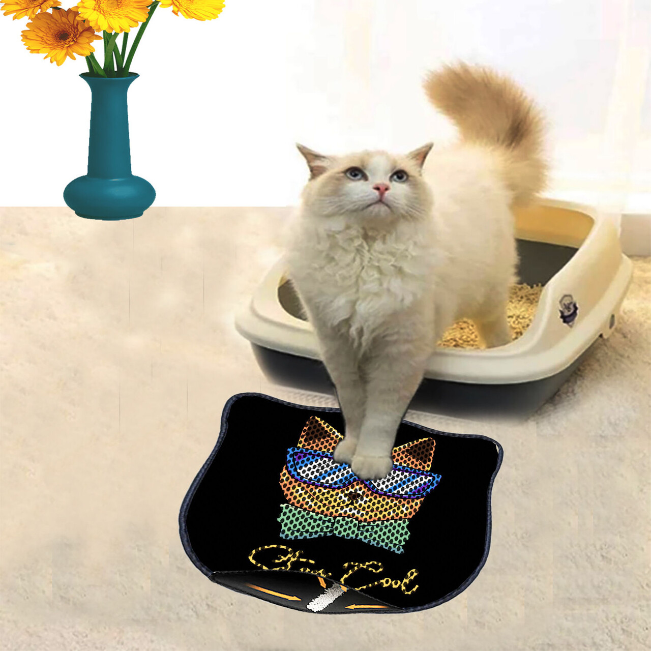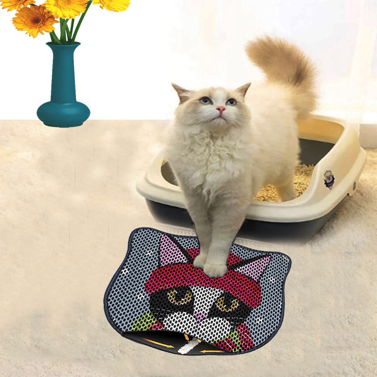 Covoras litiera pentru colectarea granulelor de nisip, Paws & Whiskers, Nrszn0037, 50% PVC/50% poliester, Multicolor