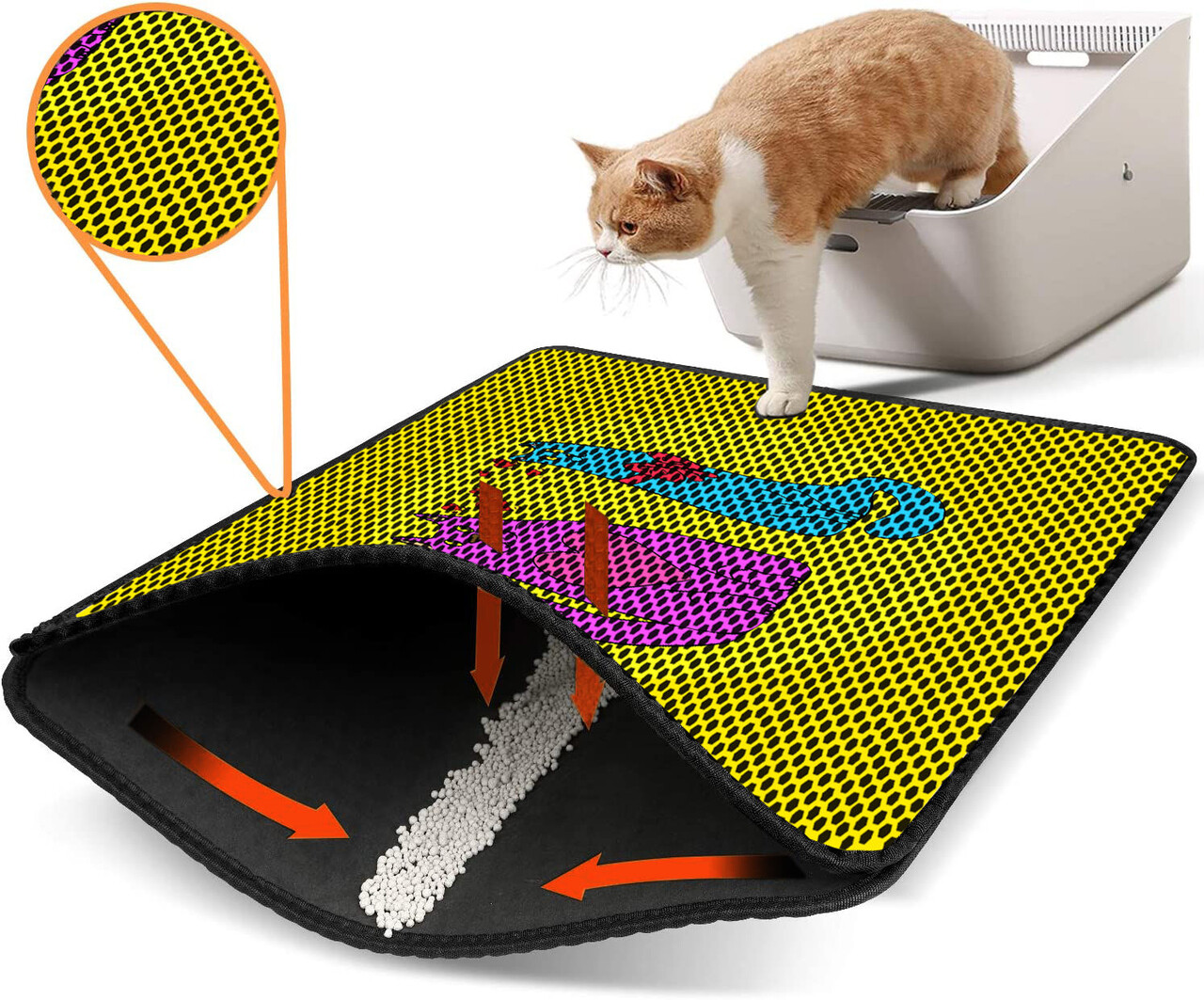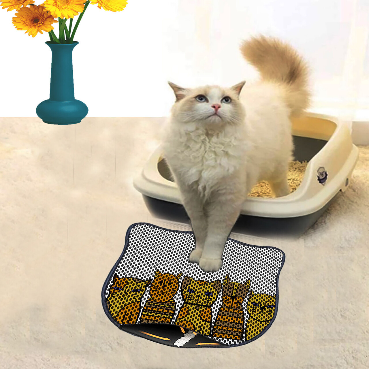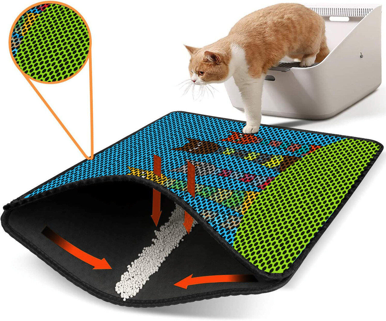 Covoras litiera pentru colectarea granulelor de nisip, Paws & Whiskers, Nrszn0039, 50% PVC/50% poliester, Multicolor