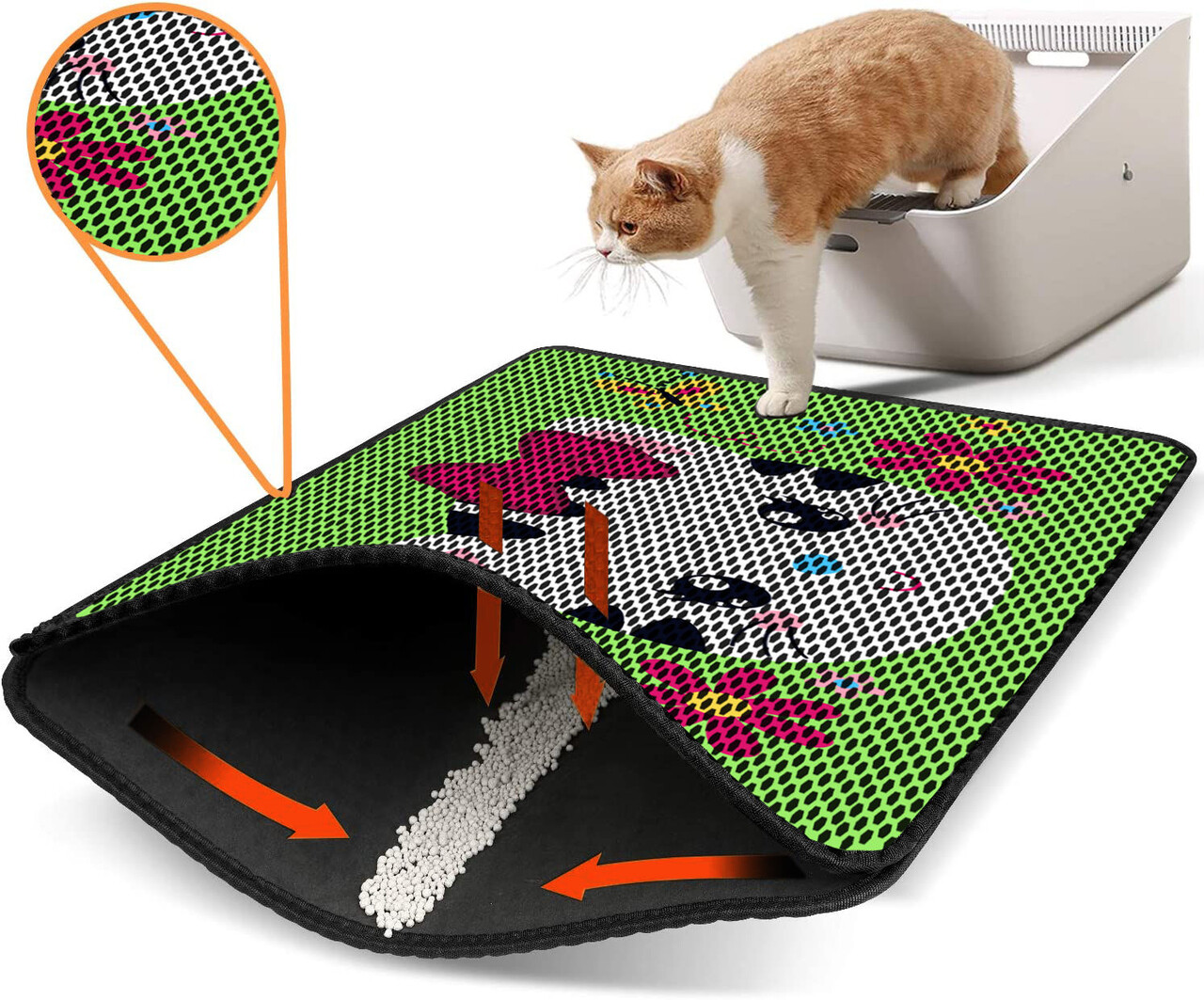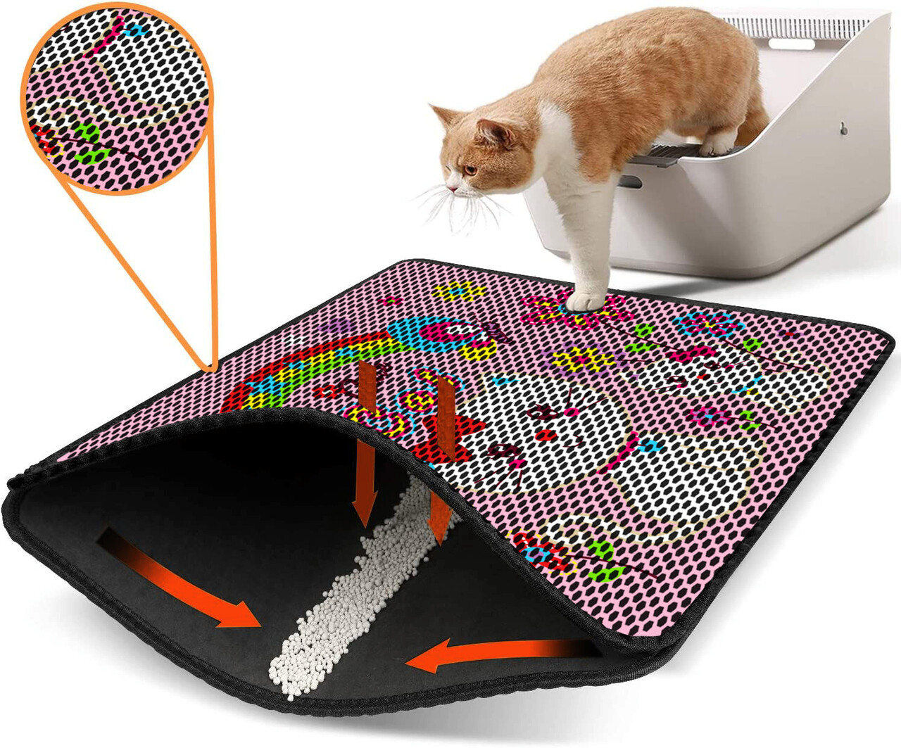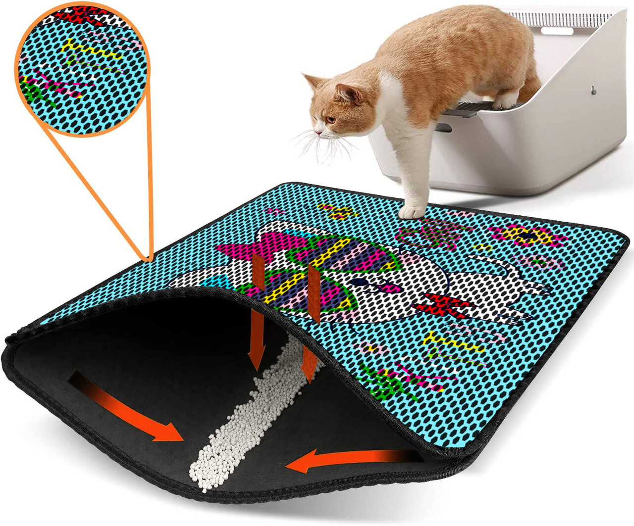 Covoras litiera pentru colectarea granulelor de nisip, Paws & Whiskers, Nrszn0093, 50% PVC/50% poliester, Multicolor