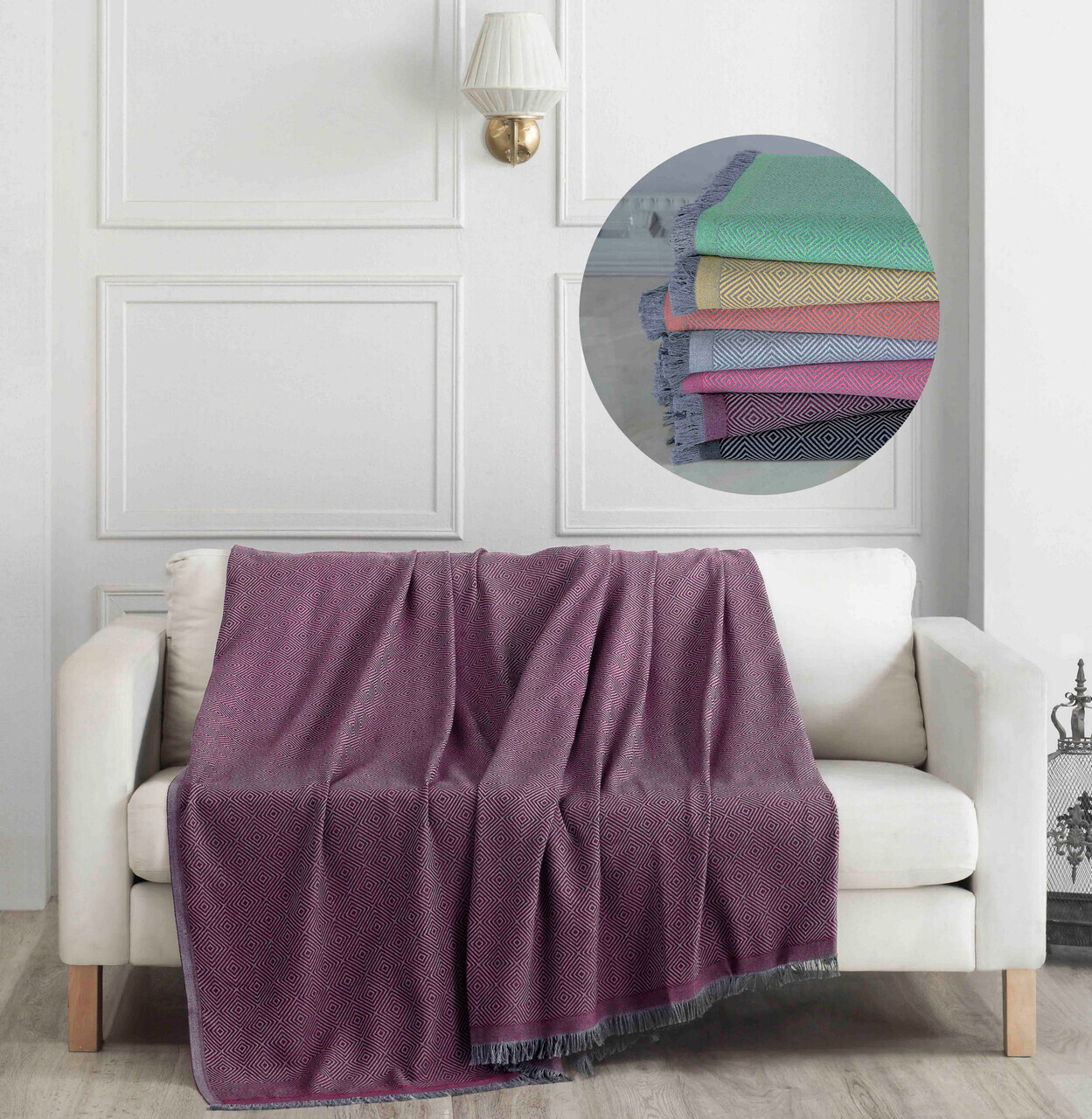 Patura Double, Lessentiel Maison, Peaceful, 60% bumbac/30% acril/10% poliester, Roșu / Alb / Gri