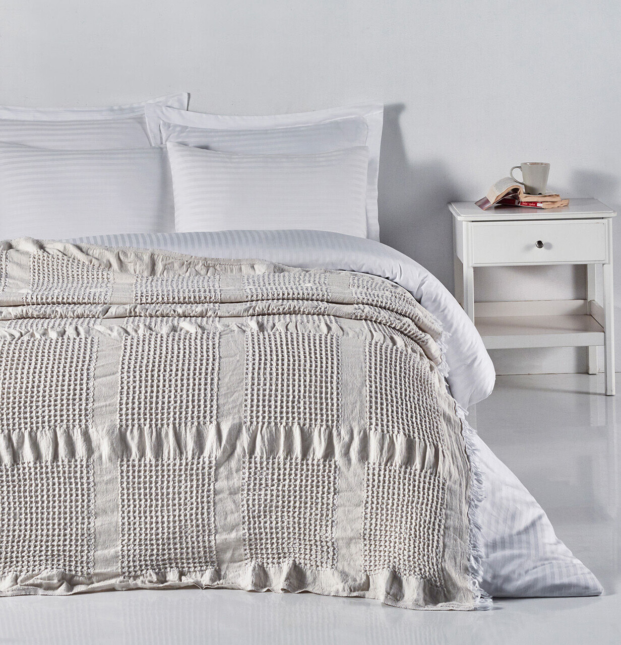 Cuvertura pique Single, Lessentiel Maison, Waffle, 65% bumbac/35% poliester, Gri